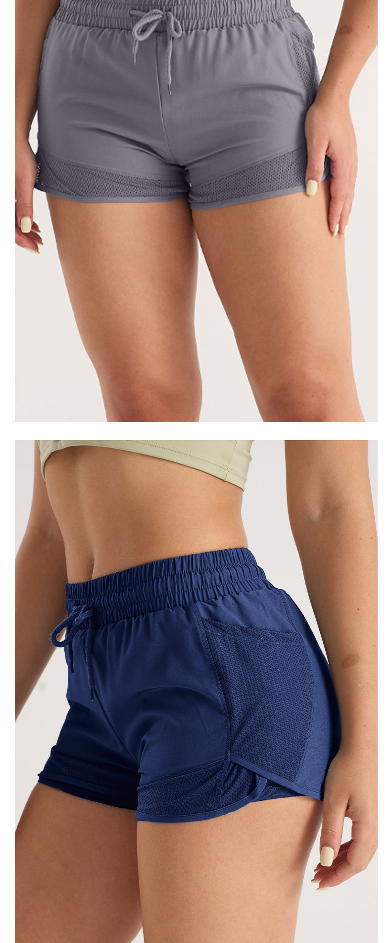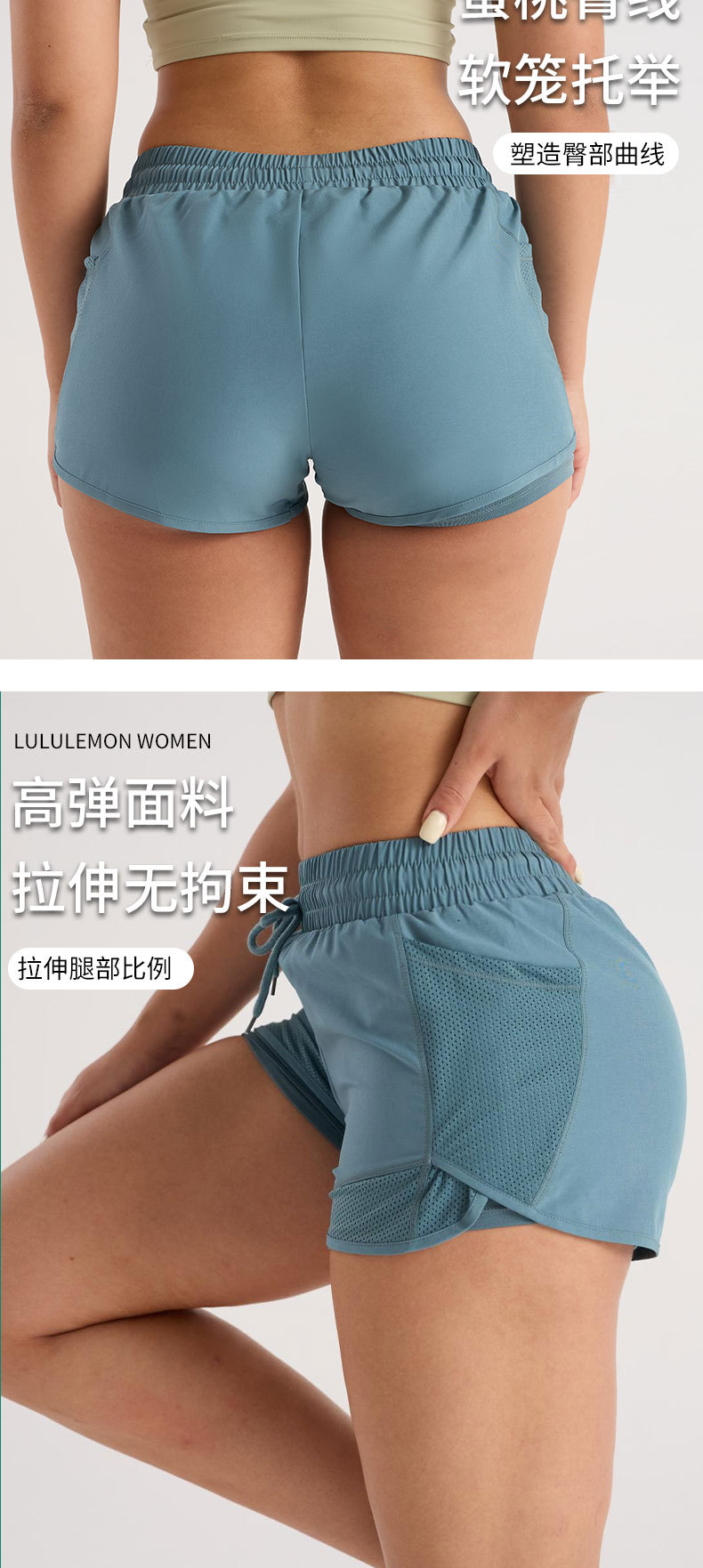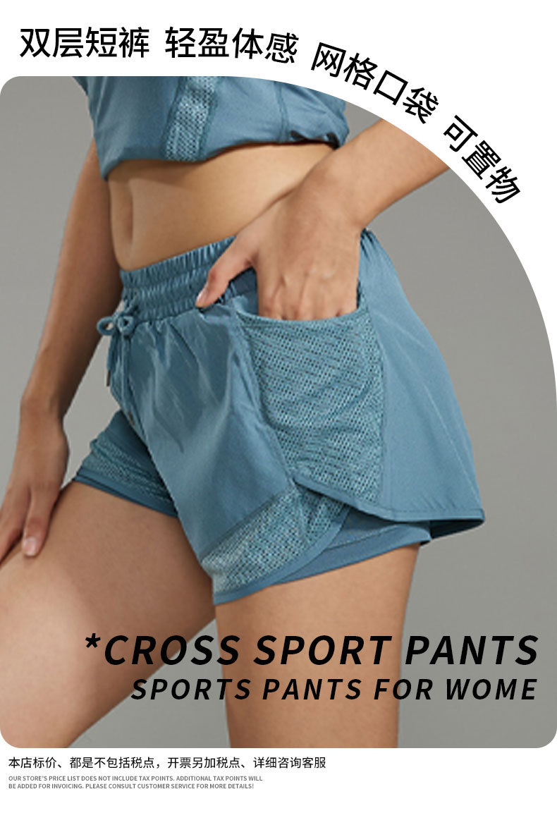 薄款速干运动短裤网纹口袋拼接瑜伽短裤跑步运动短裤女夏速干外穿