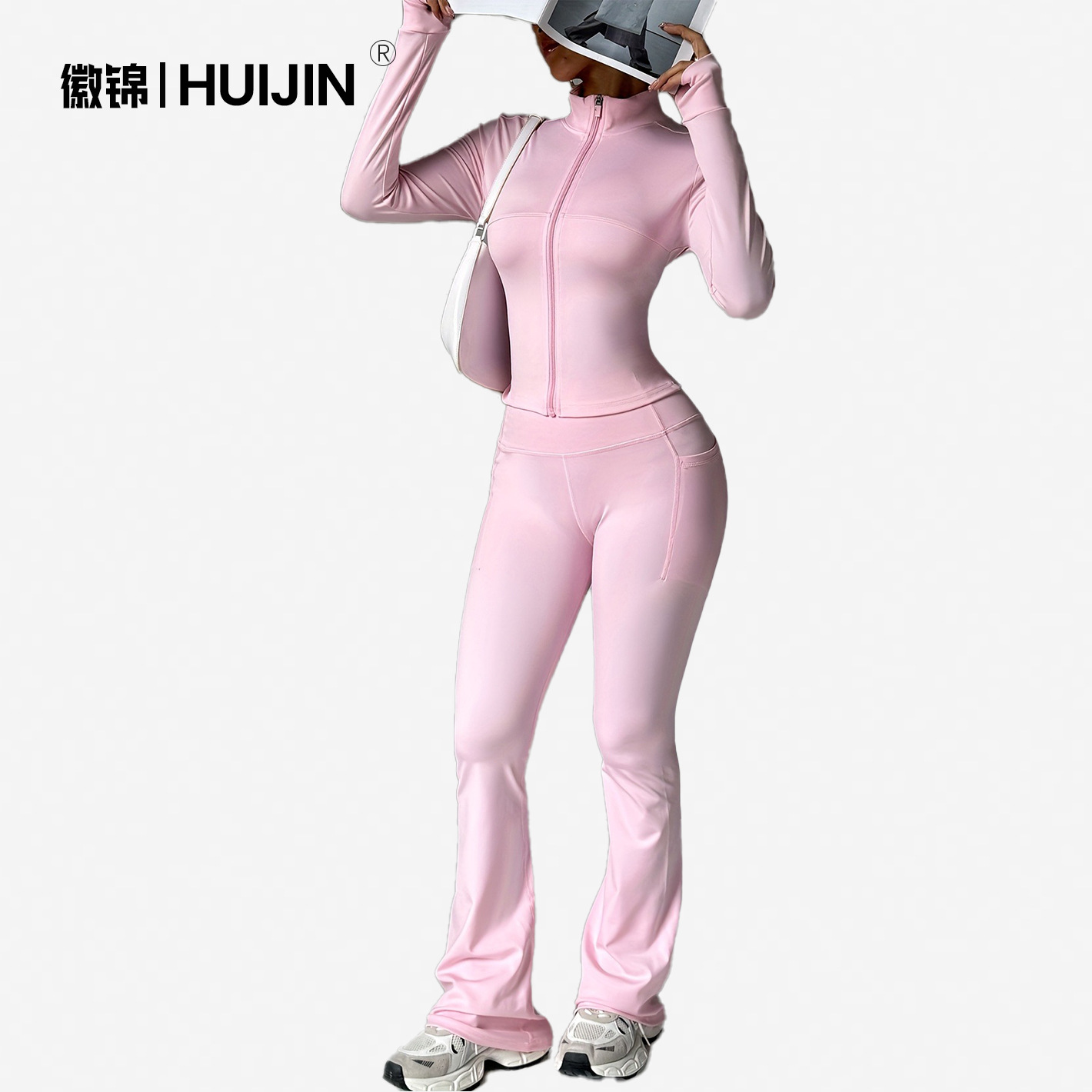 现货希音速干健身服套装女显瘦长袖夹克裸感瑜伽紧身微喇瑜伽服