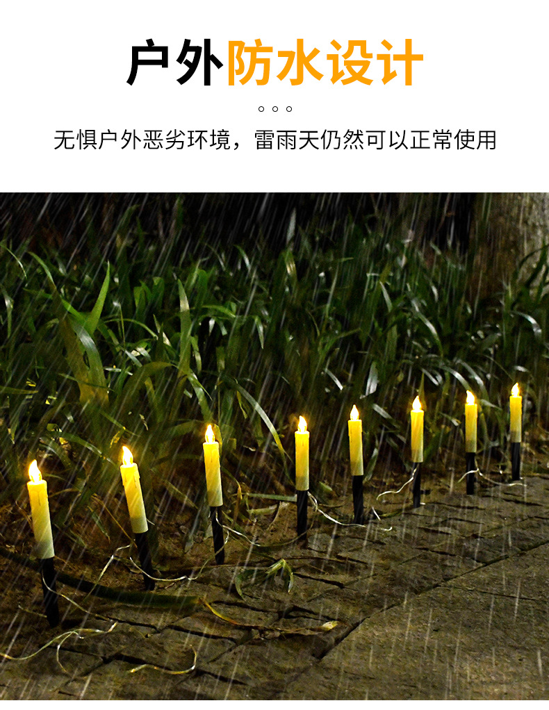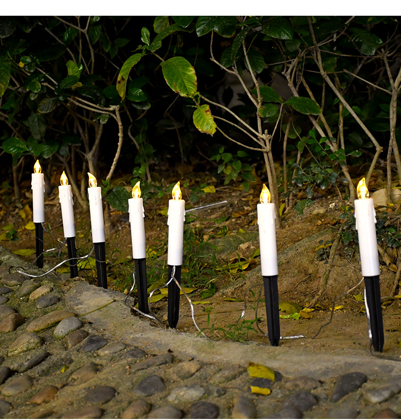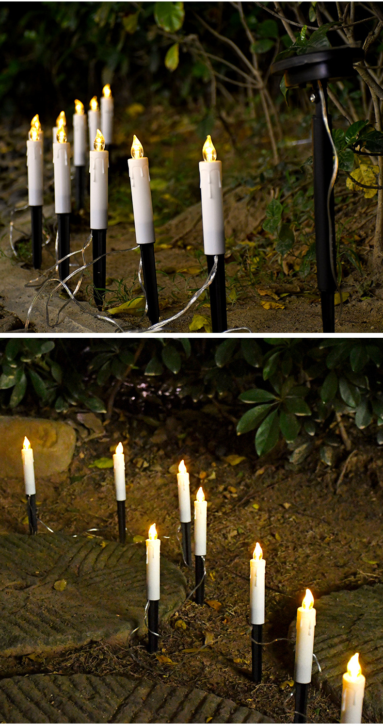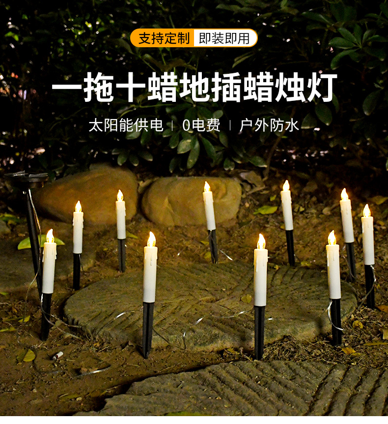 亚马逊新款太阳能蜡烛草坪灯户外防水地插灯花园装饰氛围灯一拖十