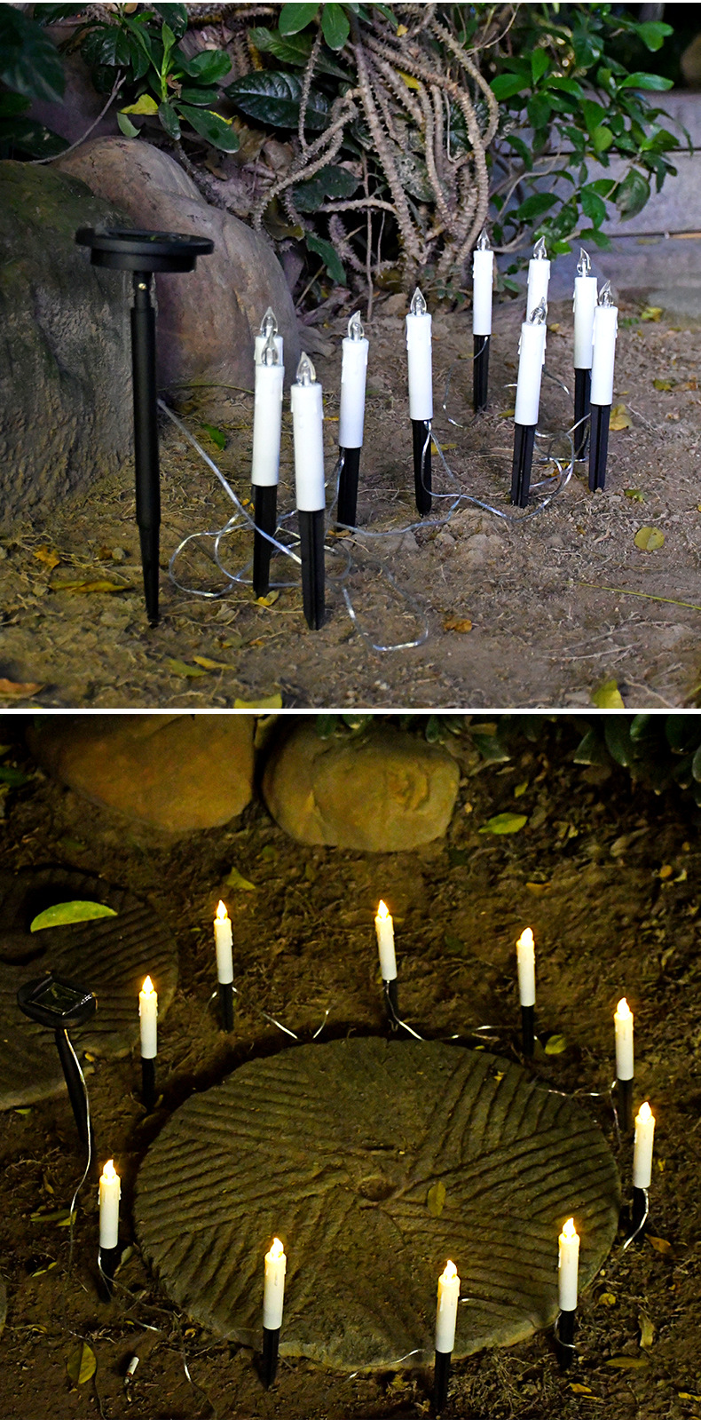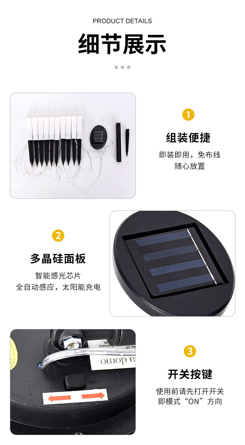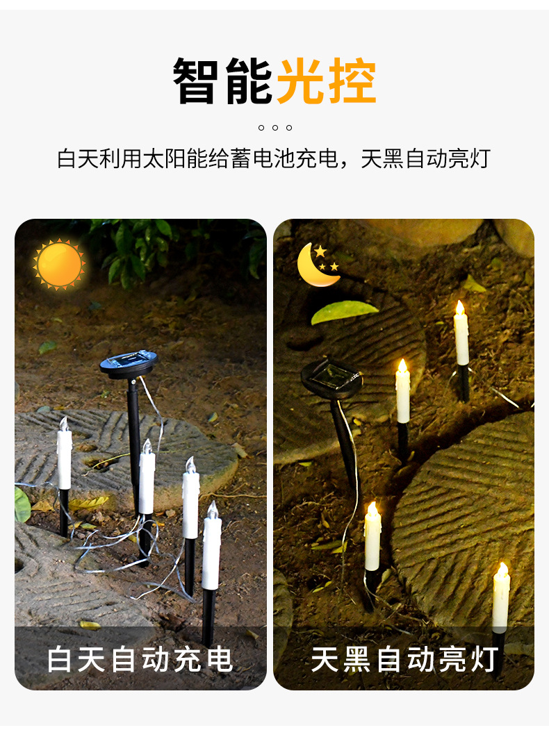 亚马逊新款太阳能蜡烛草坪灯户外防水地插灯花园装饰氛围灯一拖十