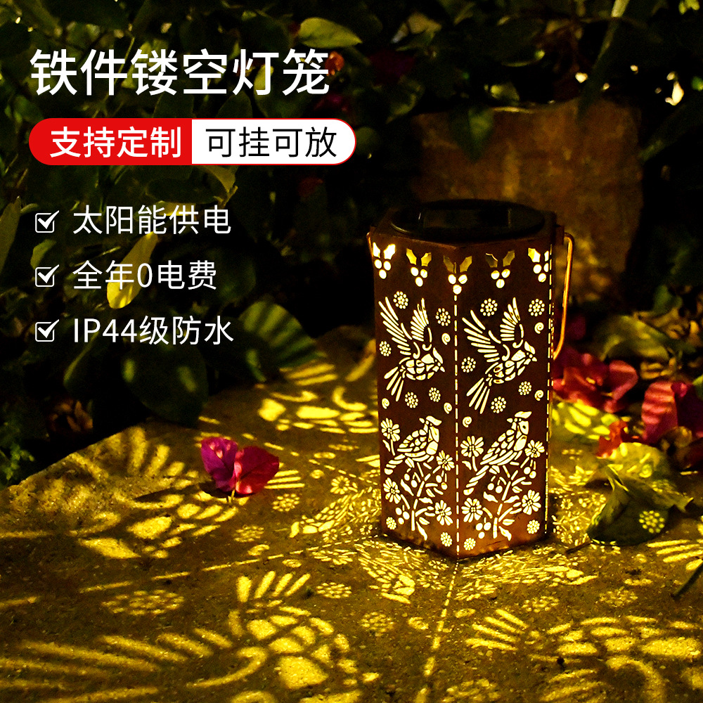 亚马逊户外太阳能LED六角镂空蜂鸟投影灯铁艺蝴蝶悬挂氛围景观灯