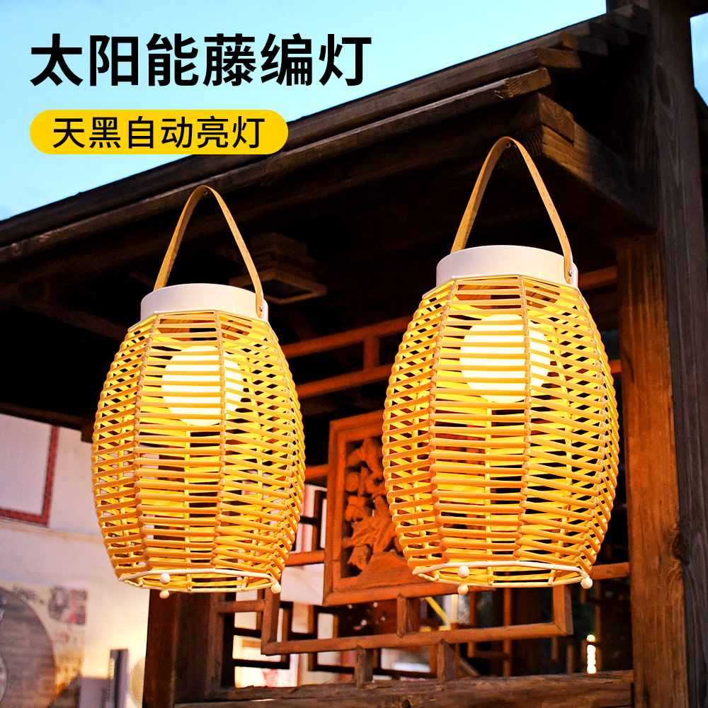 太陽エネルギー中国式防竹編提灯春節装飾藤編提灯ベランダ花園屋外庭園吊り灯卸売り
