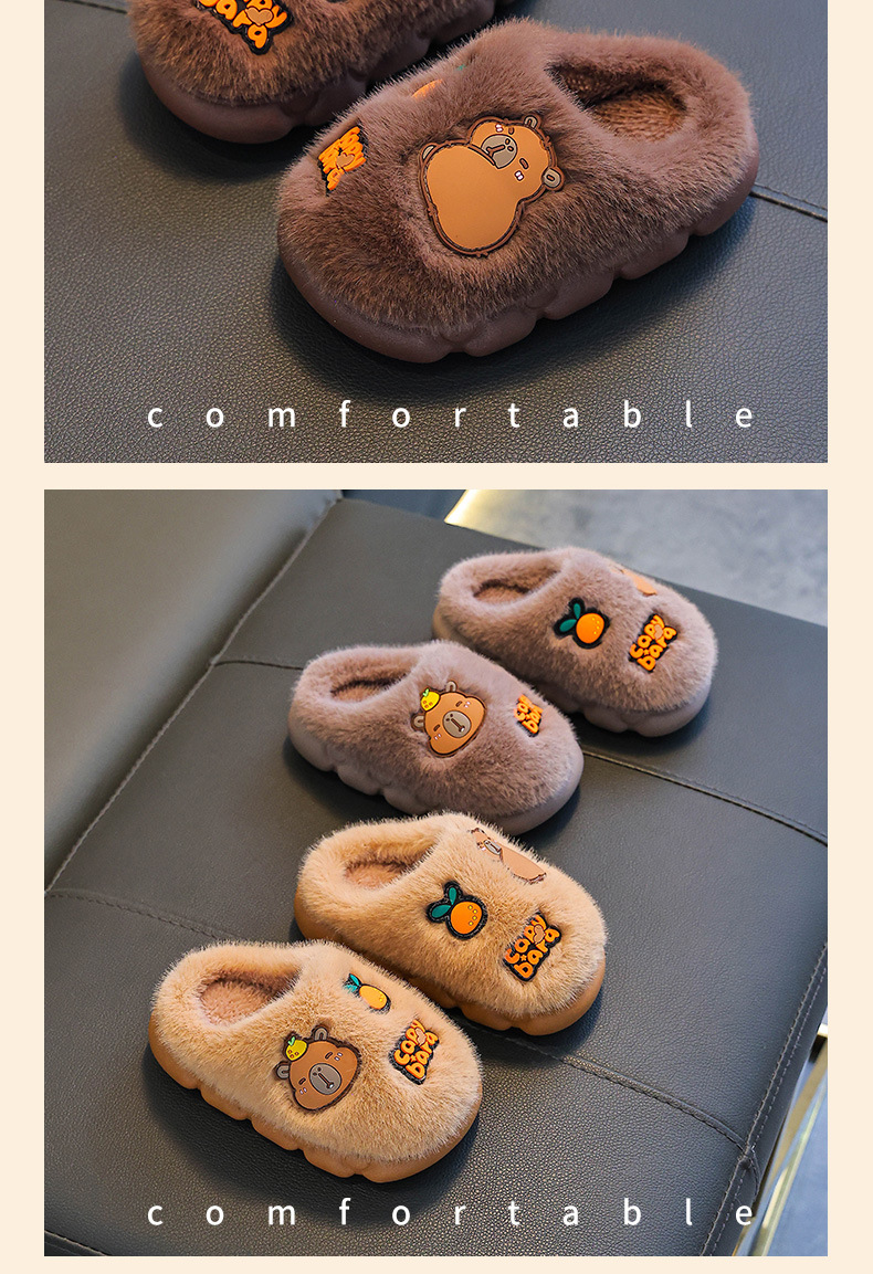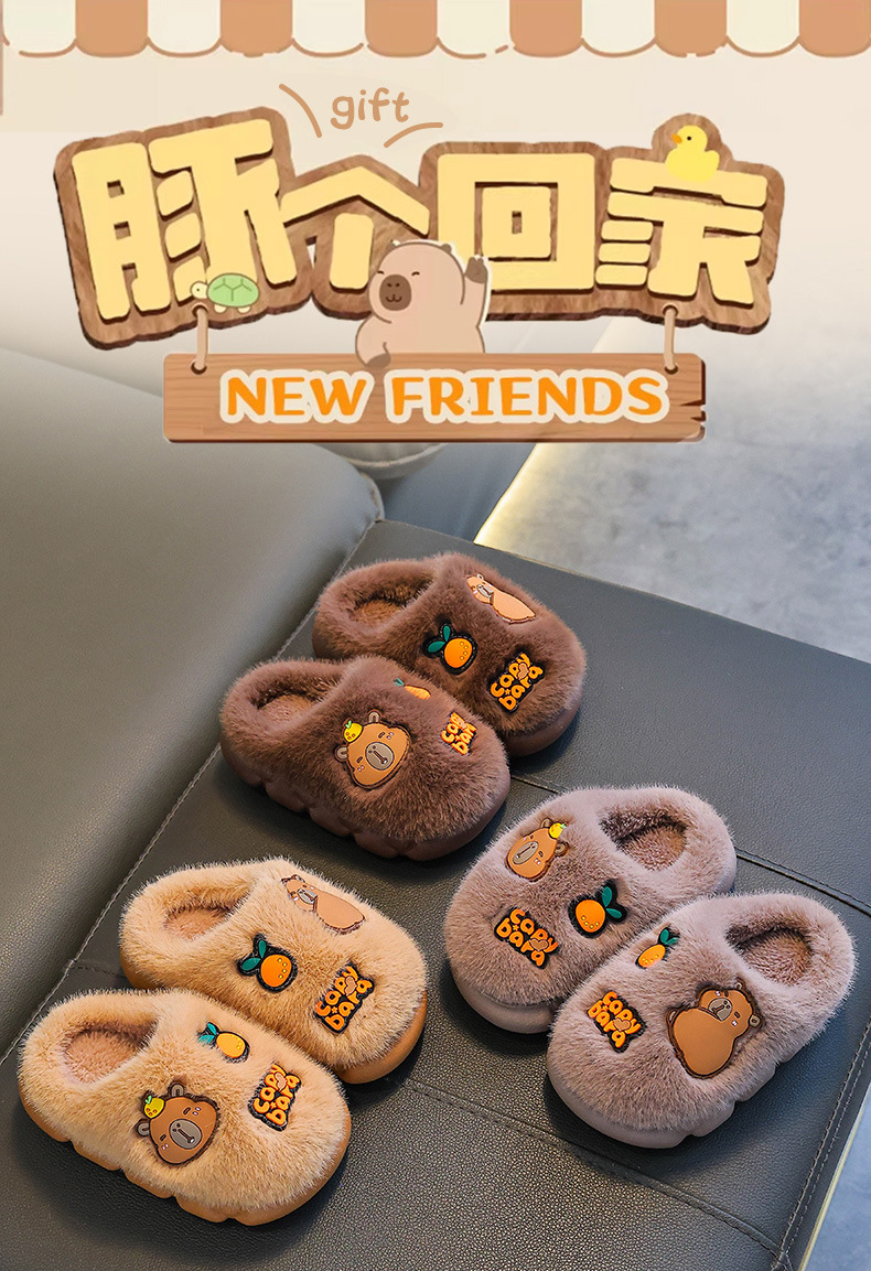 卡皮巴拉秋冬季儿童棉拖鞋男女童保暖加绒毛毛中大童亲子居家棉拖
