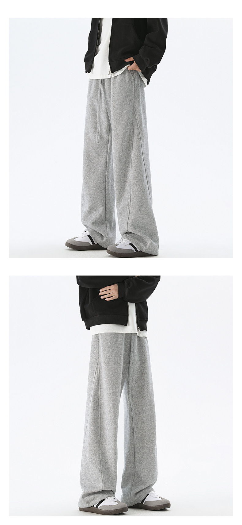 美式重磅弯刀卫裤男秋季潮牌cleanfit宽松直筒裤拼接垂感休闲裤子