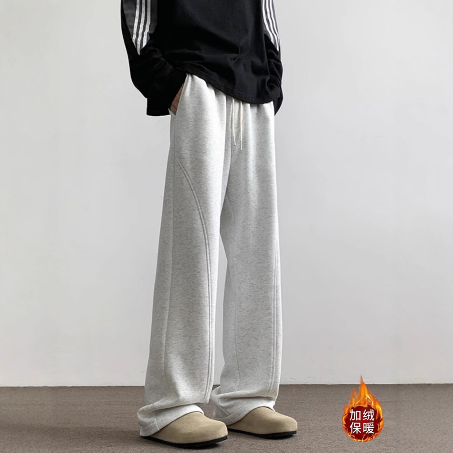 重磅加绒加厚美式老钱风2025新款阔腿裤男垂感慵懒卫裤直筒休闲裤