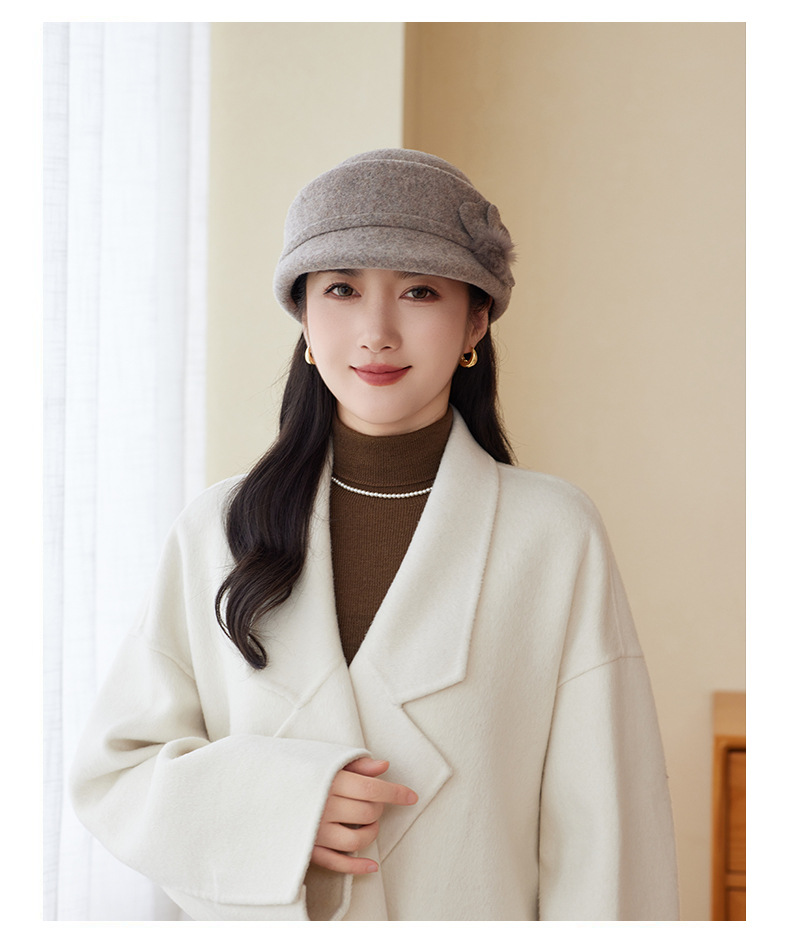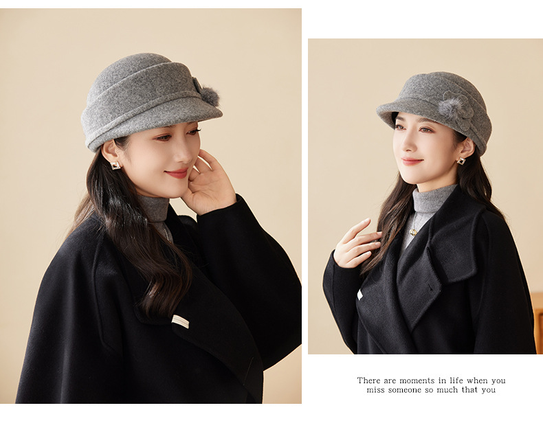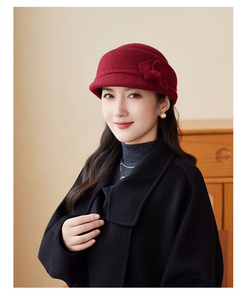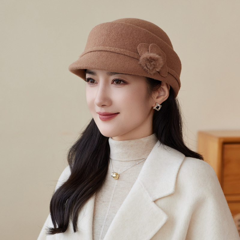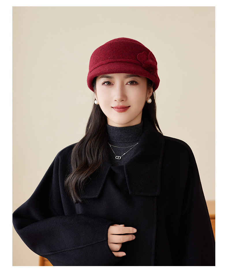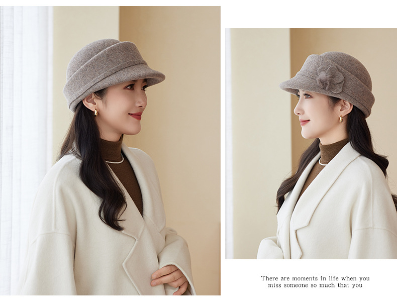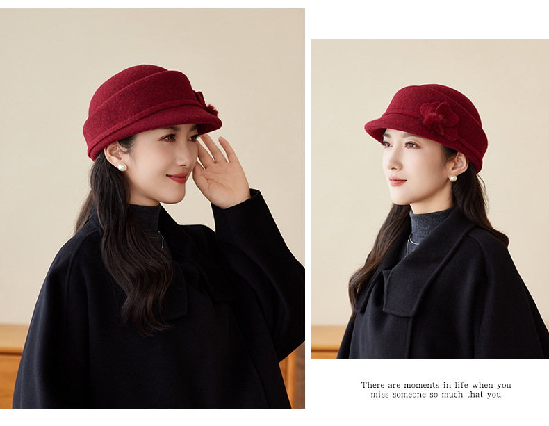 秋冬新款羊毛呢妈妈帽时尚显脸小花朵百搭马术帽加厚保暖中老年帽