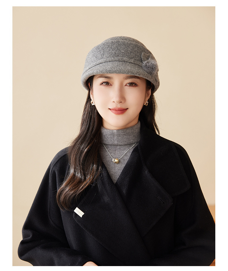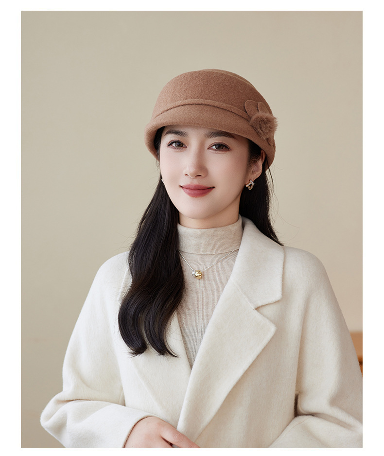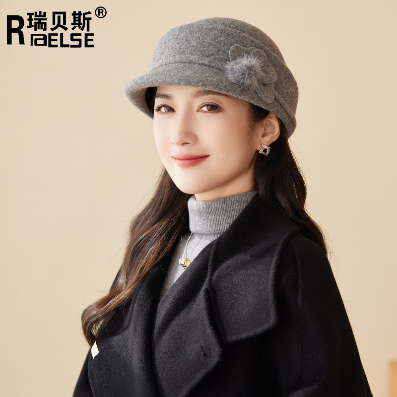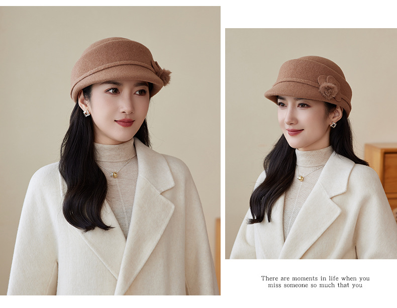 新款羊毛呢帽子女秋冬韩版时尚百搭盆帽户外出行显脸小保暖妈妈帽