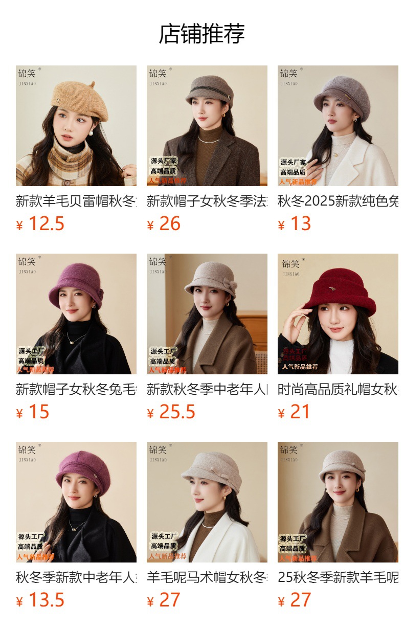 2025秋冬中老年羊毛呢马术帽户外百搭时装加厚保暖显脸小礼帽批发