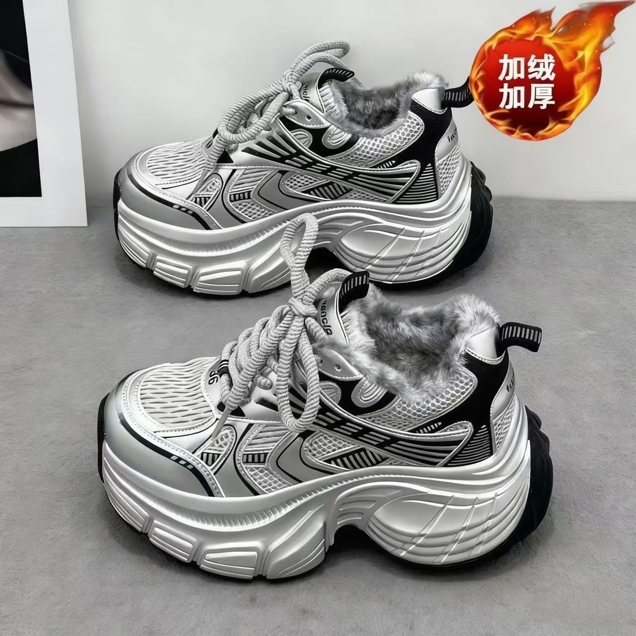 加绒爆款老爹鞋女2025冬季新款百搭学生保暖大棉鞋厚底运动休闲鞋