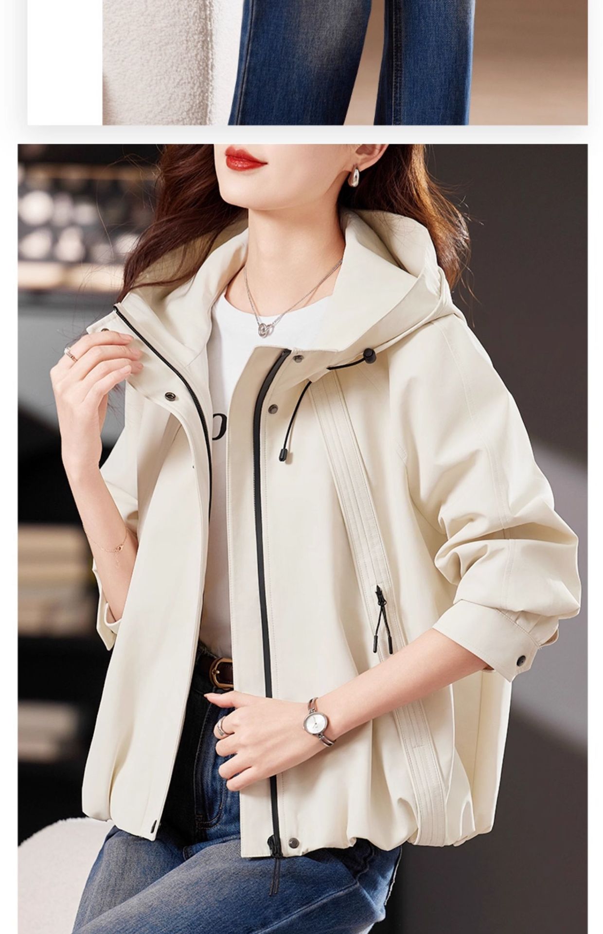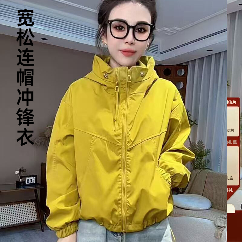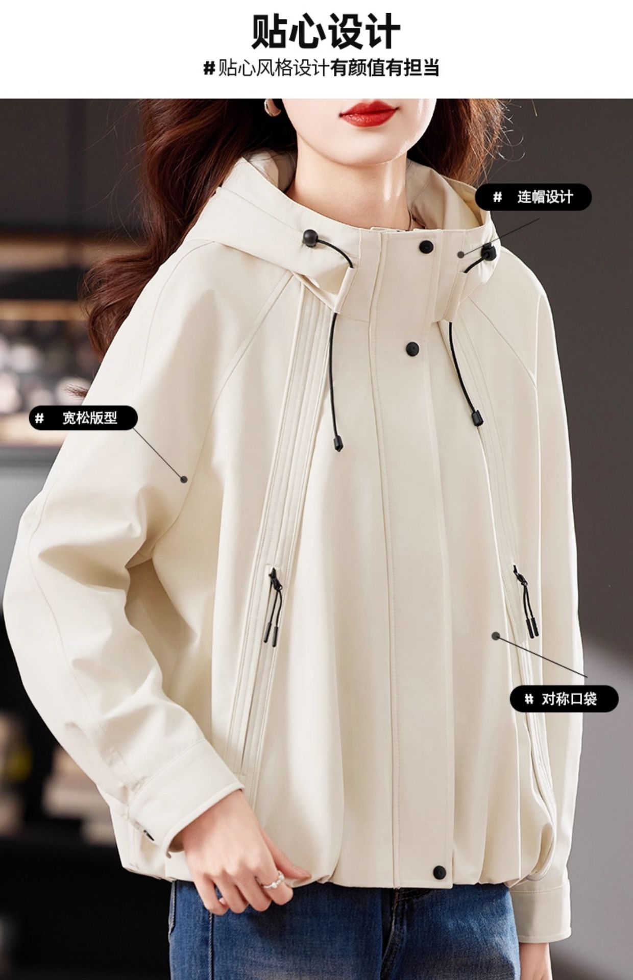 短款设计感冲锋衣外套女秋级韩版宽松别致小个子连帽夹克上衣