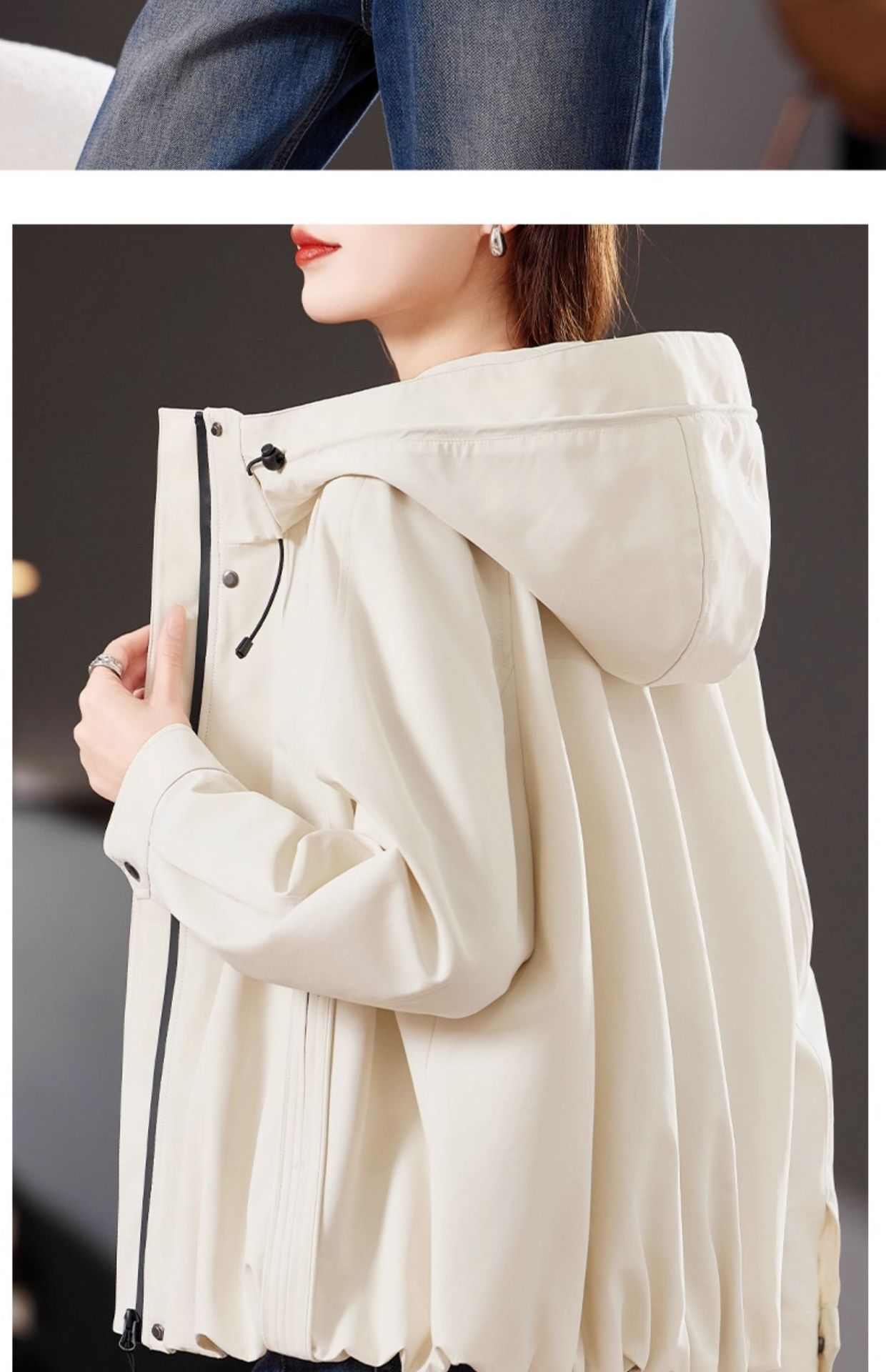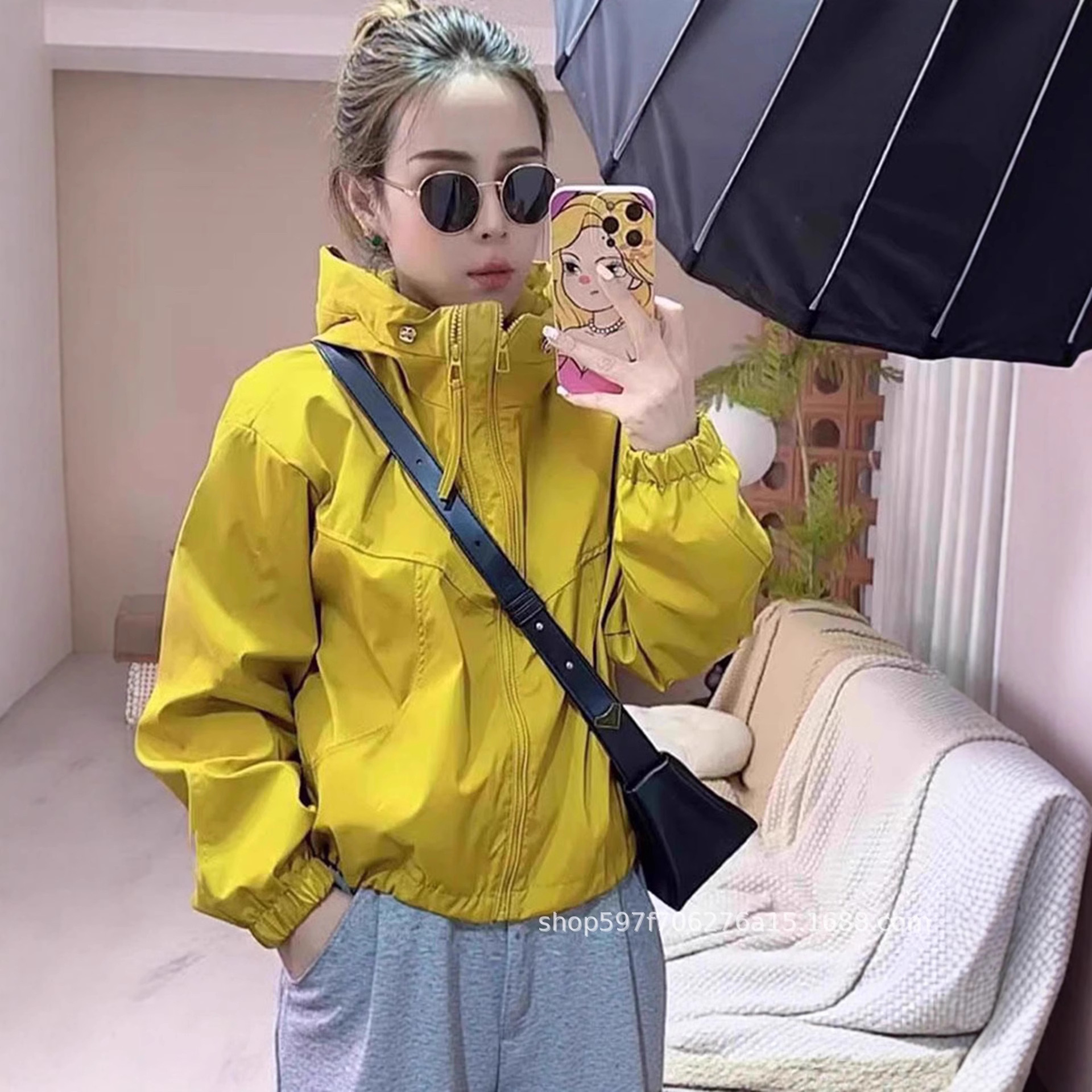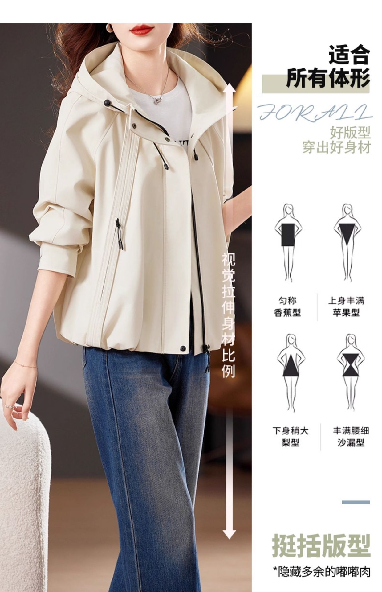 短款设计感冲锋衣外套女秋级韩版宽松别致小个子连帽夹克上衣