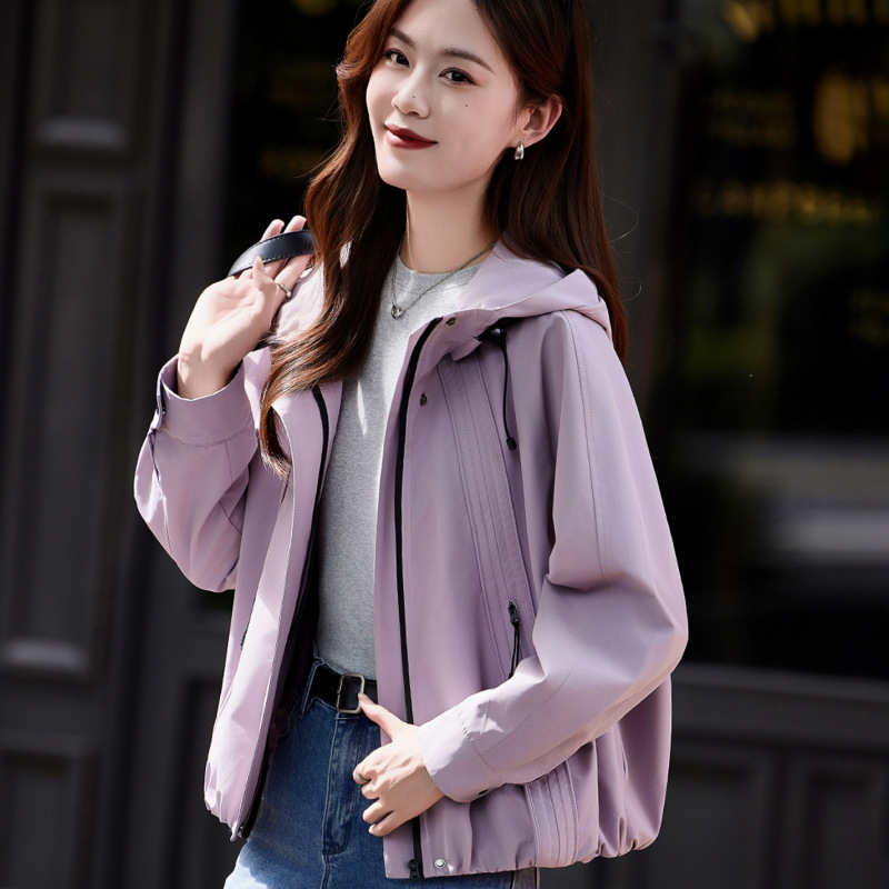 紫色冲锋衣外套女小个子2025火春秋新款今年流行爆款短休闲春装