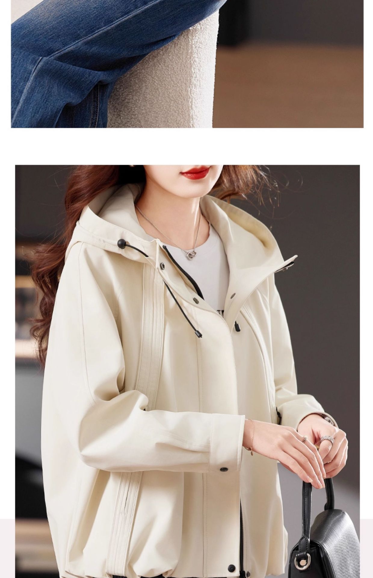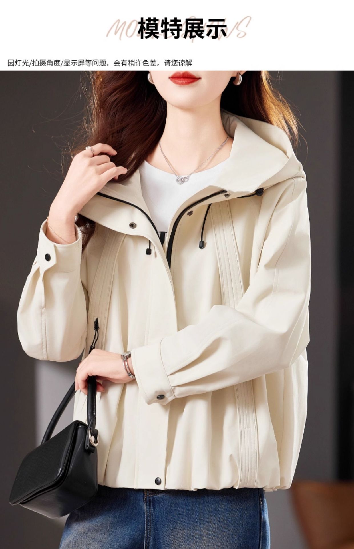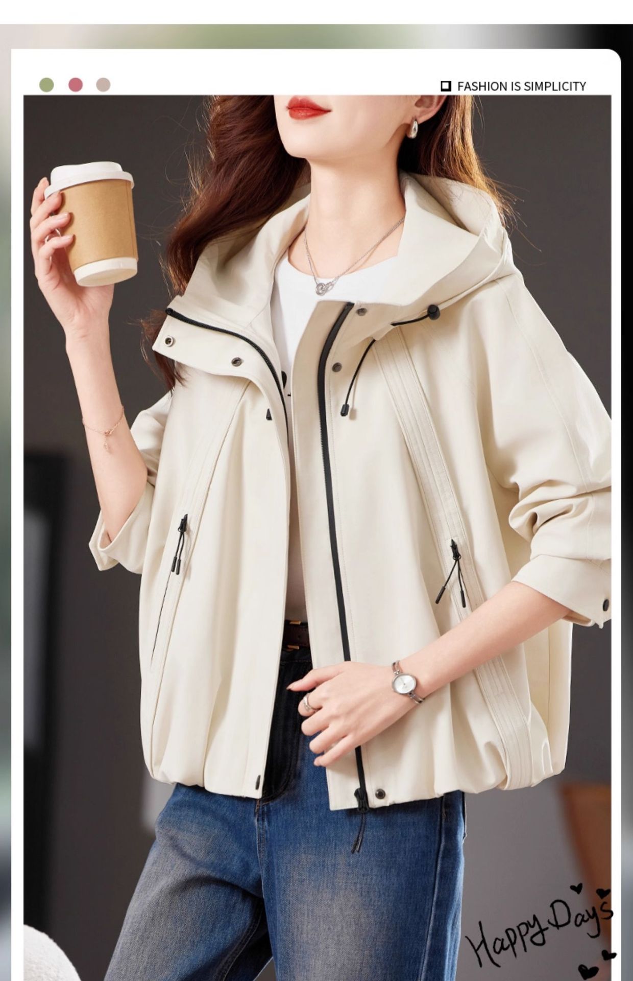 純色の短いタイプの帽子付きの突撃服のコートの女性の春秋の新型のシンプルなファッションのゆったりしたカジュアルジャケットの上着のファッション