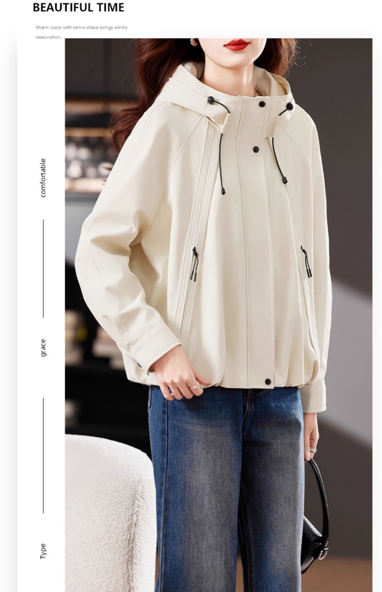 帽子の短い純色の小さい背の突撃服のコートの女性の春秋のゆったりしているカジュアルなジャケットの双ファスナーのファッション的な上着