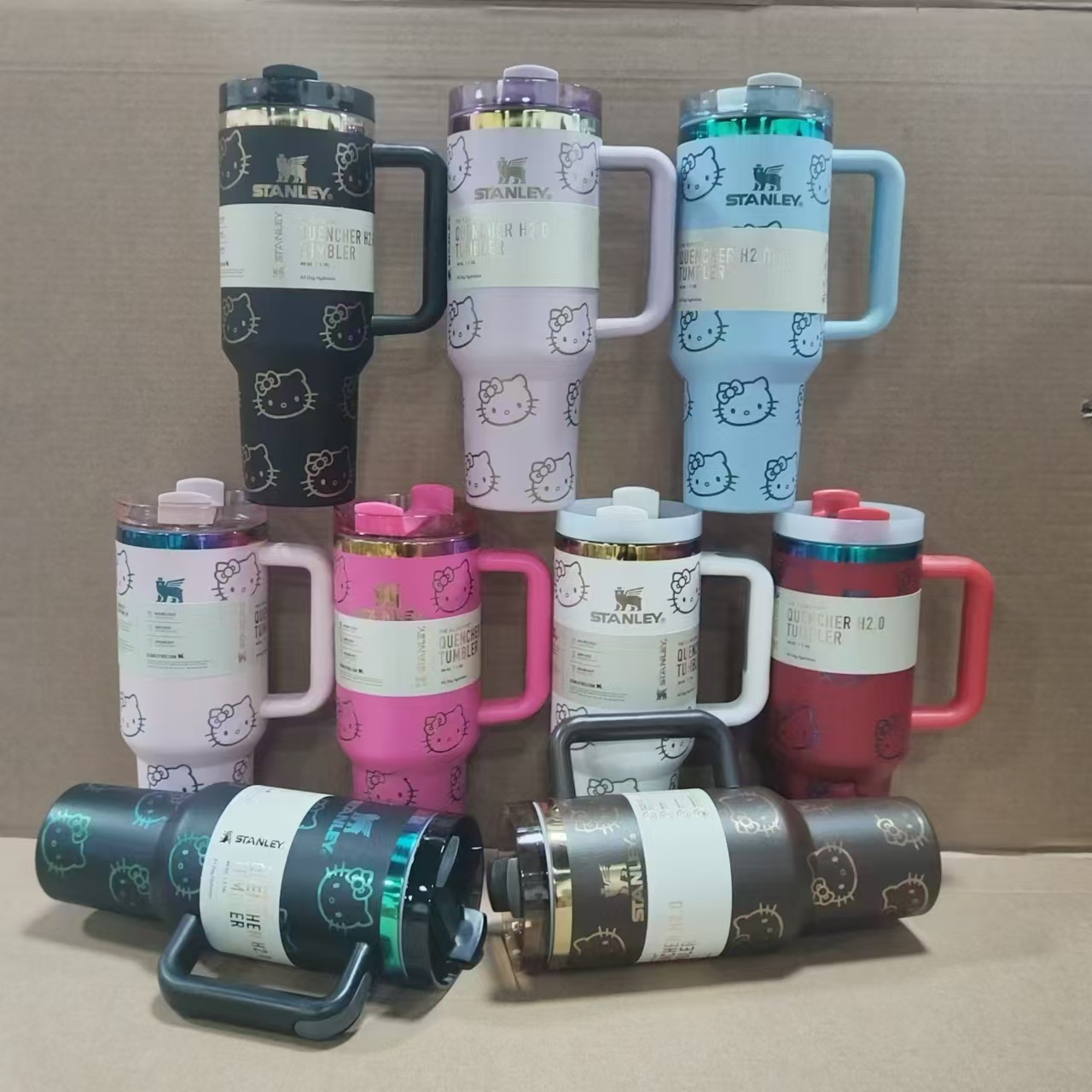 40oz卡通KT猫手柄汽车杯带吸管车载保冷冰霸杯304不锈钢保温杯
