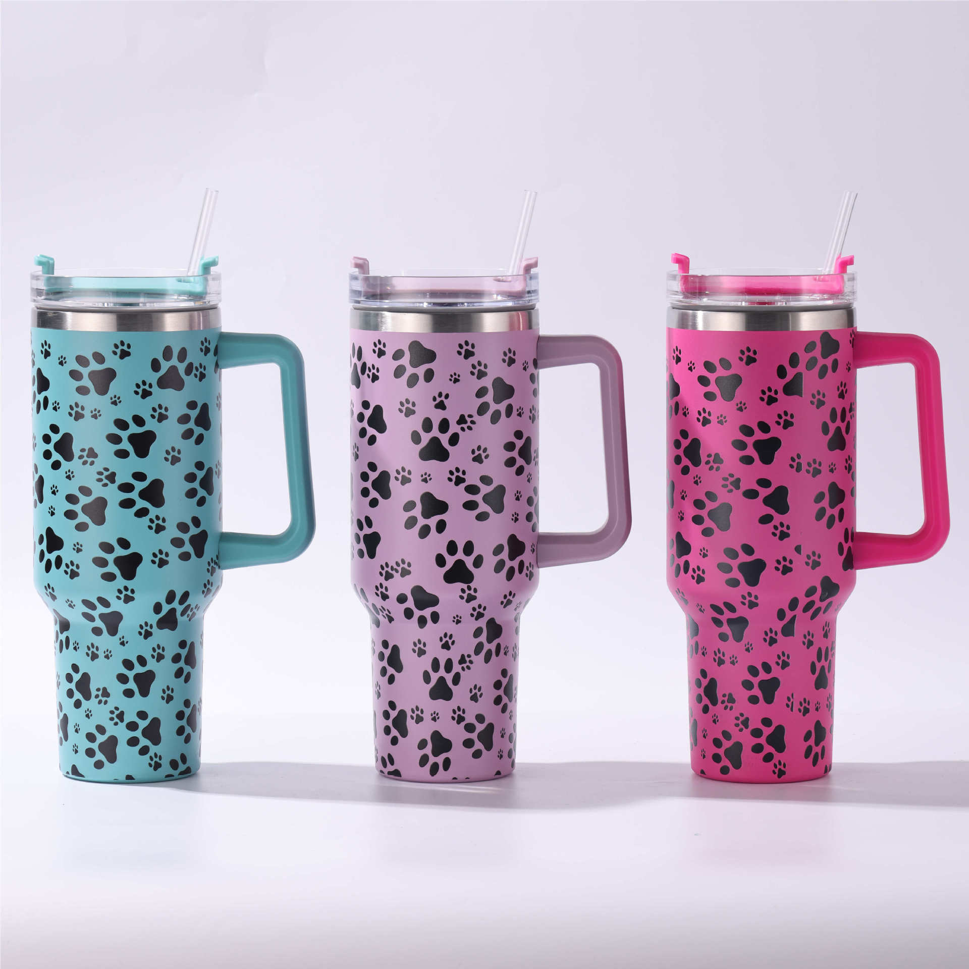 クロスボーダー屋外304ステンレス40オンス氷覇カップ猫爪豹紋レーザー真空車載カップアイデア