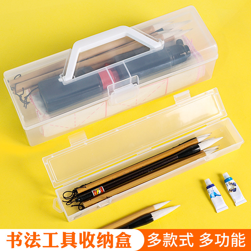 透明毛筆収納ケース手提げ式美術ツールボックス書道絵収納ケース携帯大容量卸売り