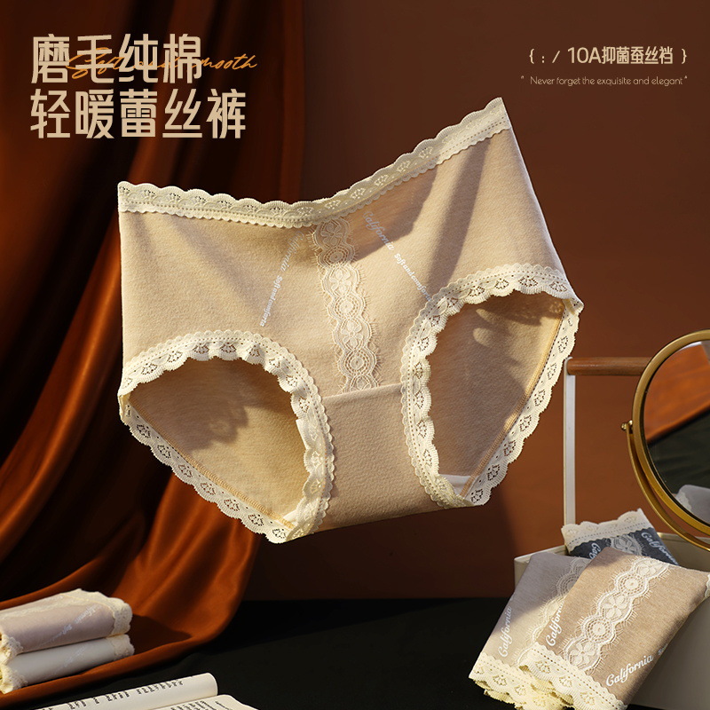 秋冬羊绒般蕾丝磨毛纯棉女士内裤无痕中腰包臀亲肤透气少女生内裤
