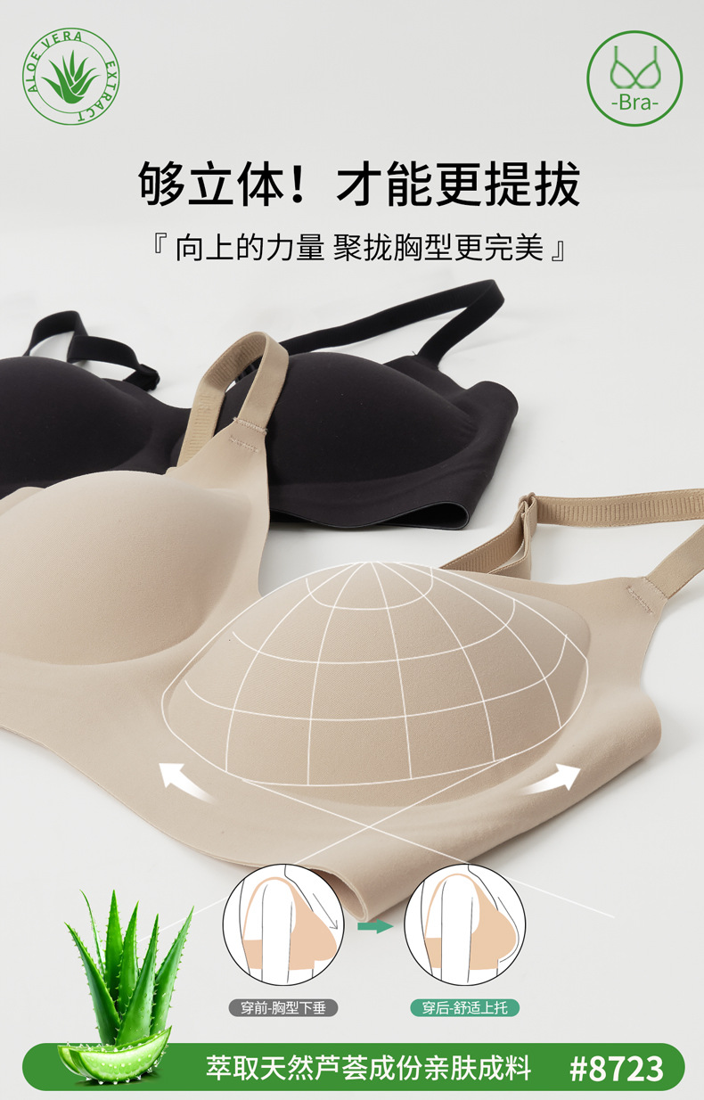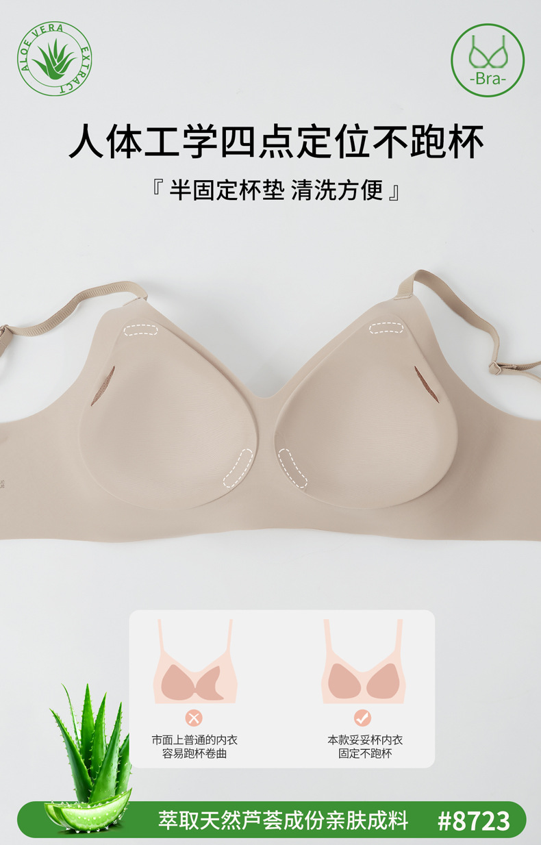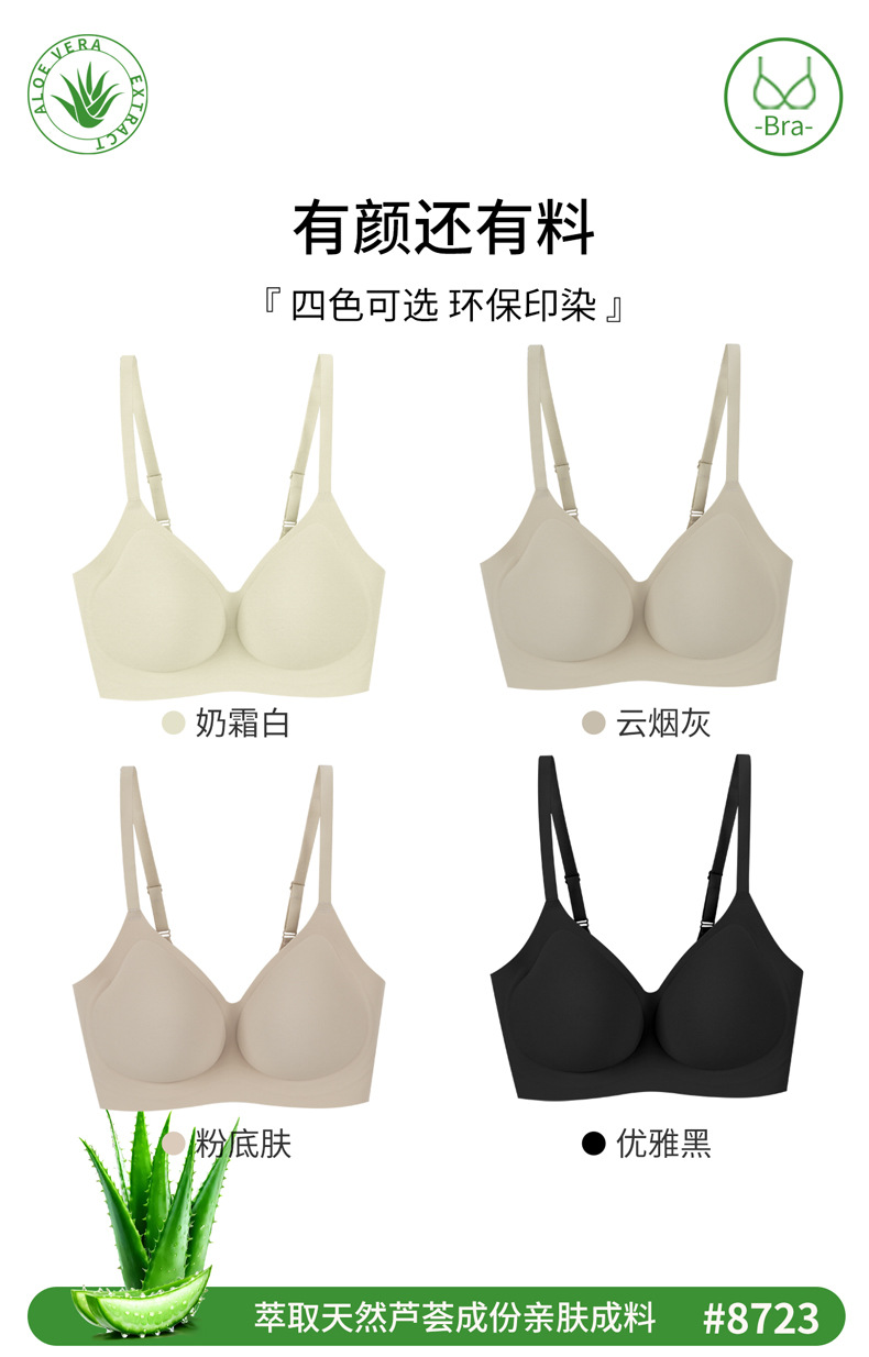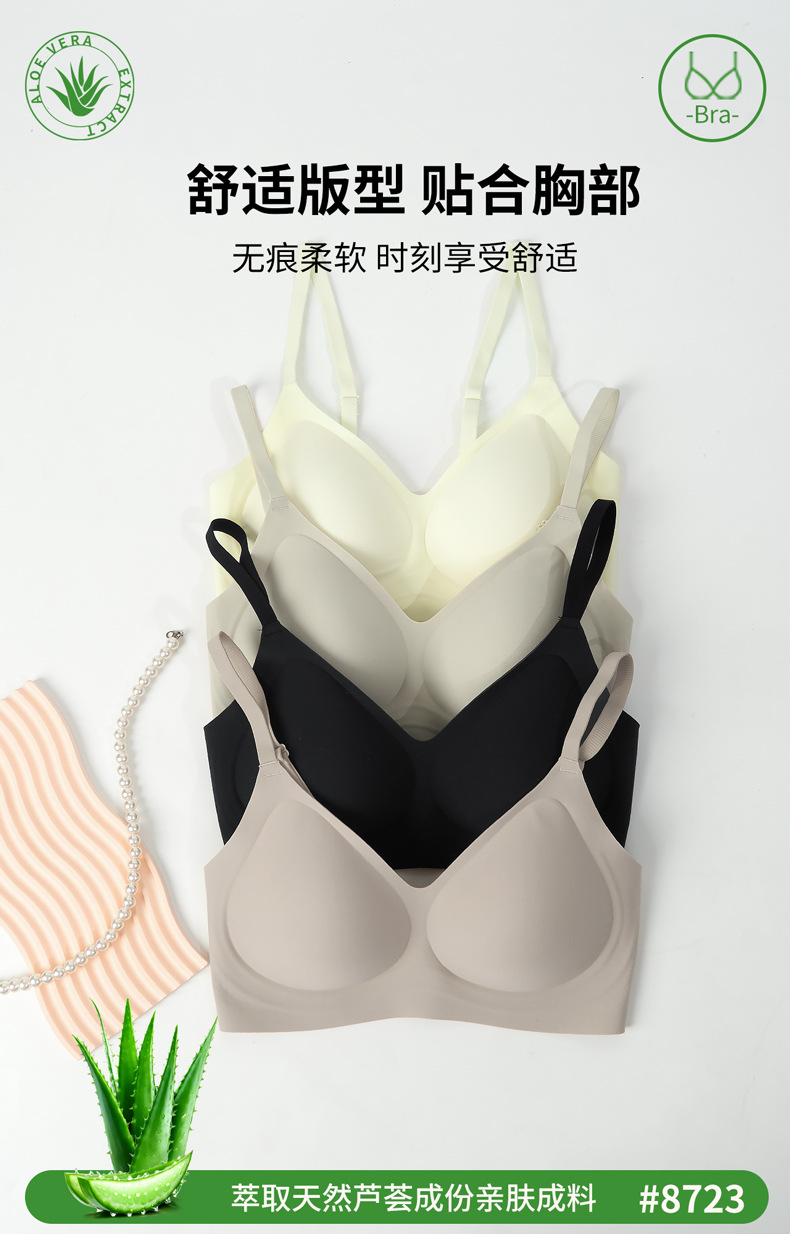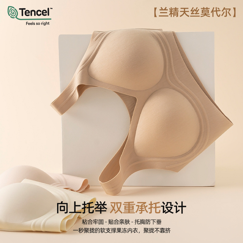 兰精莫代尔无痕内衣女吸汗无钢圈聚拢收副乳防下垂粉底液隐形文胸