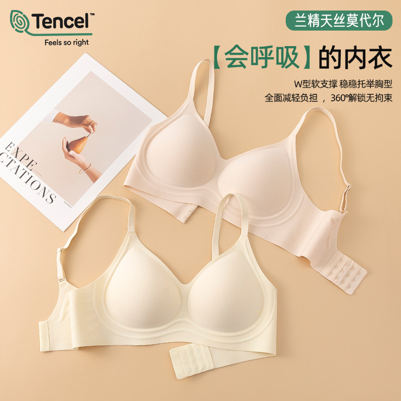 兰精莫代尔无痕文胸小胸聚拢无钢圈舒适透气防下垂固定杯内衣女士
