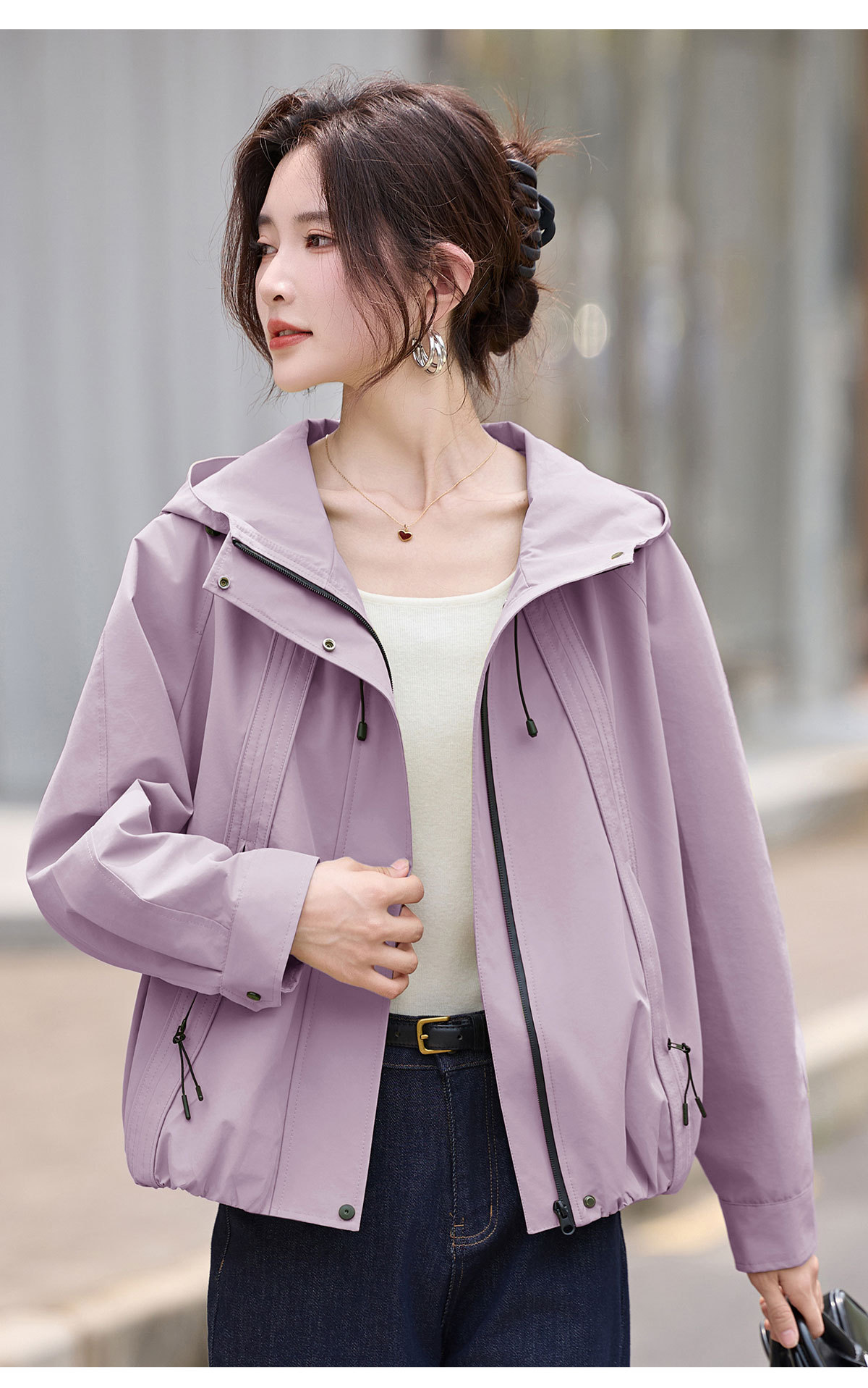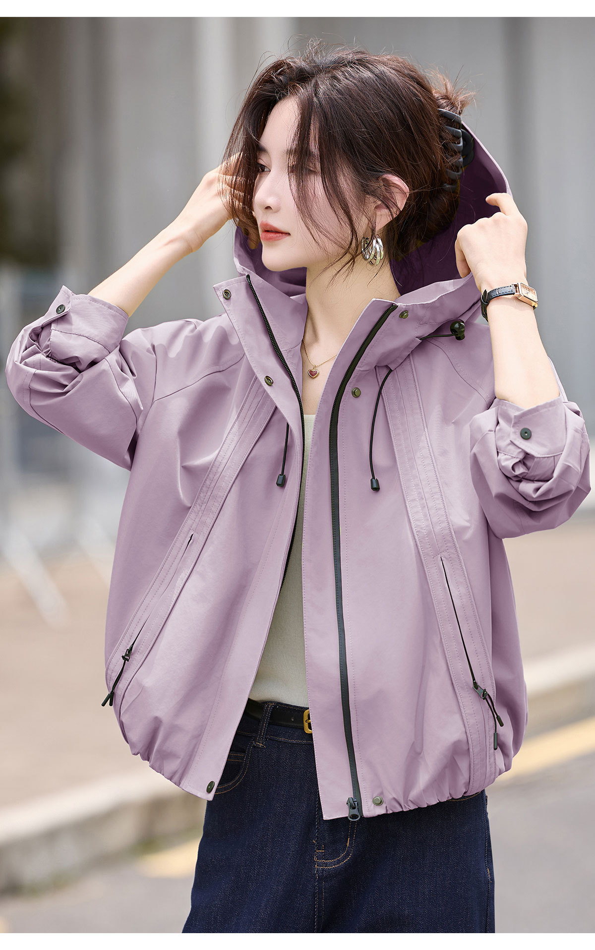 紫色冲锋衣外套女小个子2025火春秋新款今年流行爆款短休闲春装