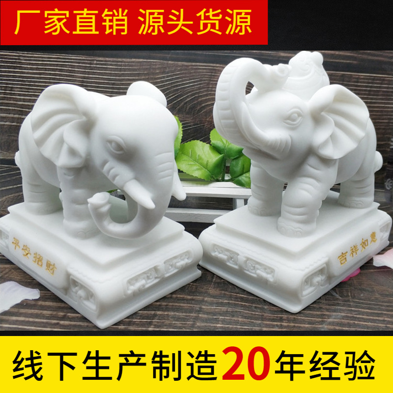 石像象の対漢白玉石象鎮宅招財風水象事務室カウンターの家庭装飾品の置物