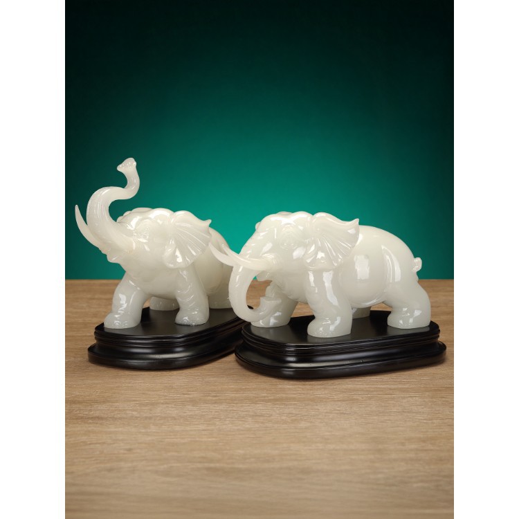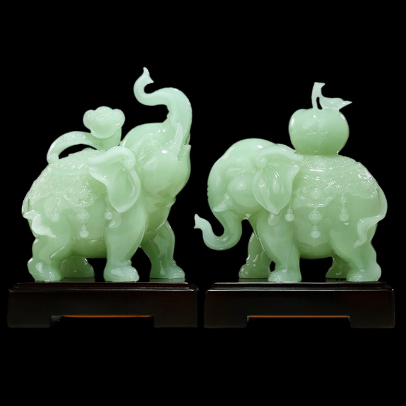 大象摆件一对玉石中式客厅玄关办公室桌面工艺品饰品乔迁开业礼物