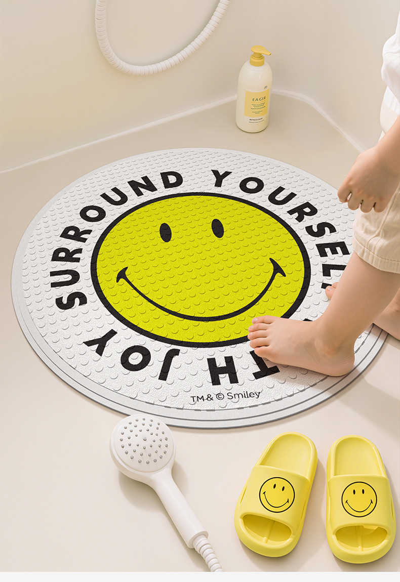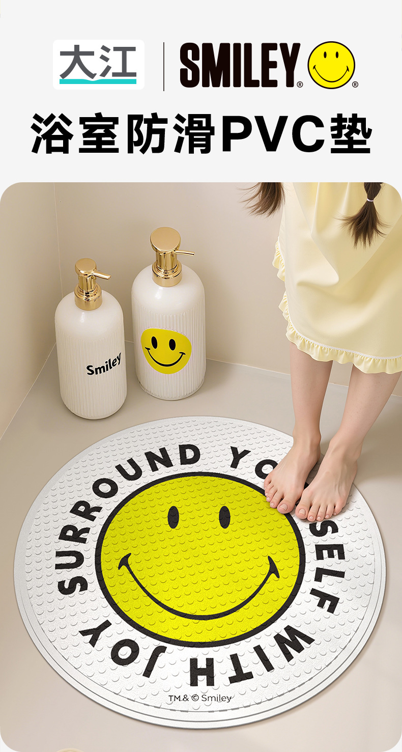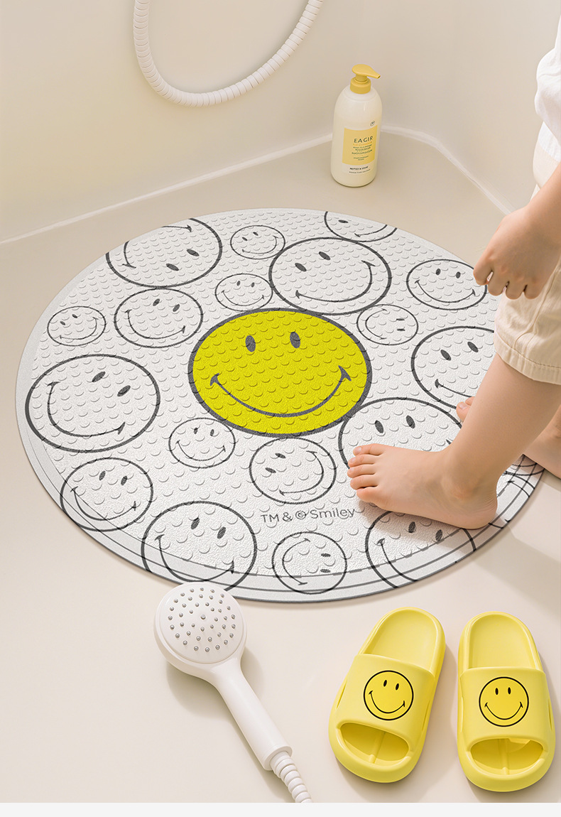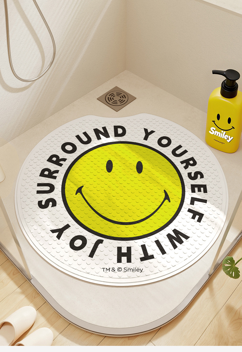 正版微笑圆形地垫浴室pvc环保按摩吸盘防滑垫淋浴房儿童洗澡脚垫