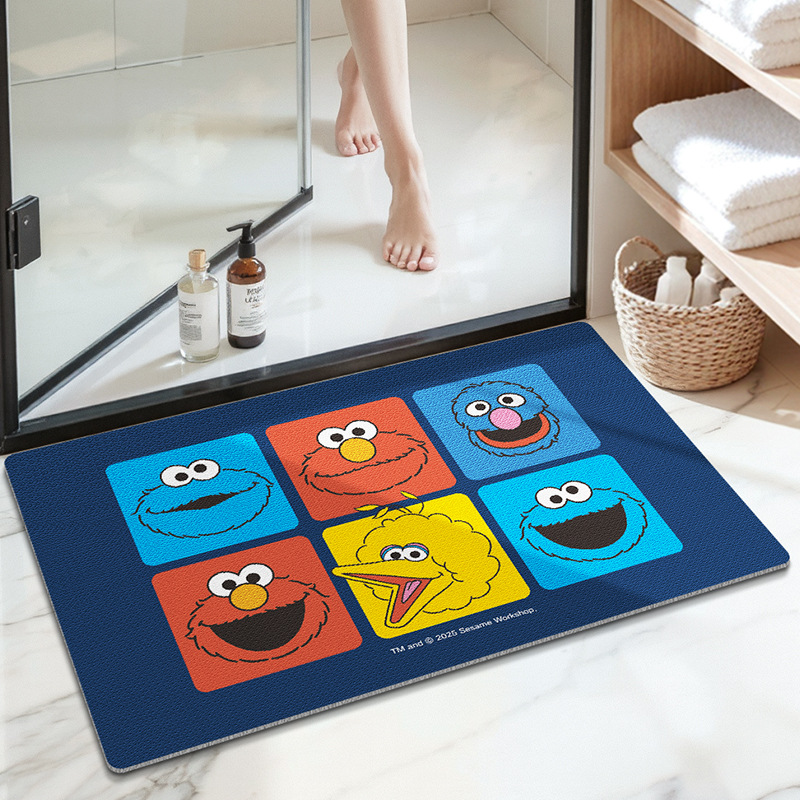 大江IP联名芝麻街家居地垫浴室吸水科技绒家居卫生间防滑速干地毯