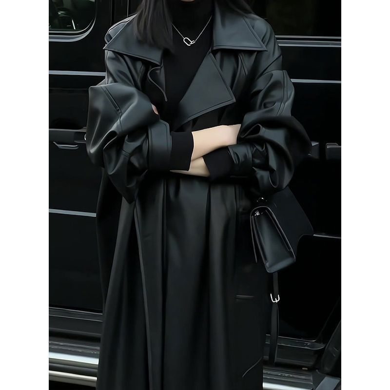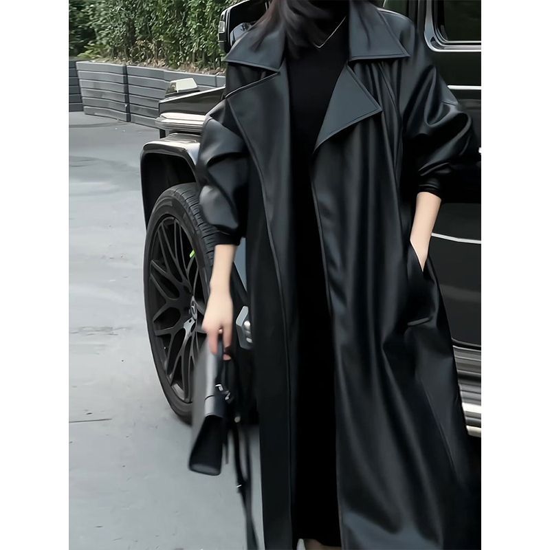 2026年秋季时尚修身过膝长款皮衣外套女高级感暗黑气质时髦大衣潮