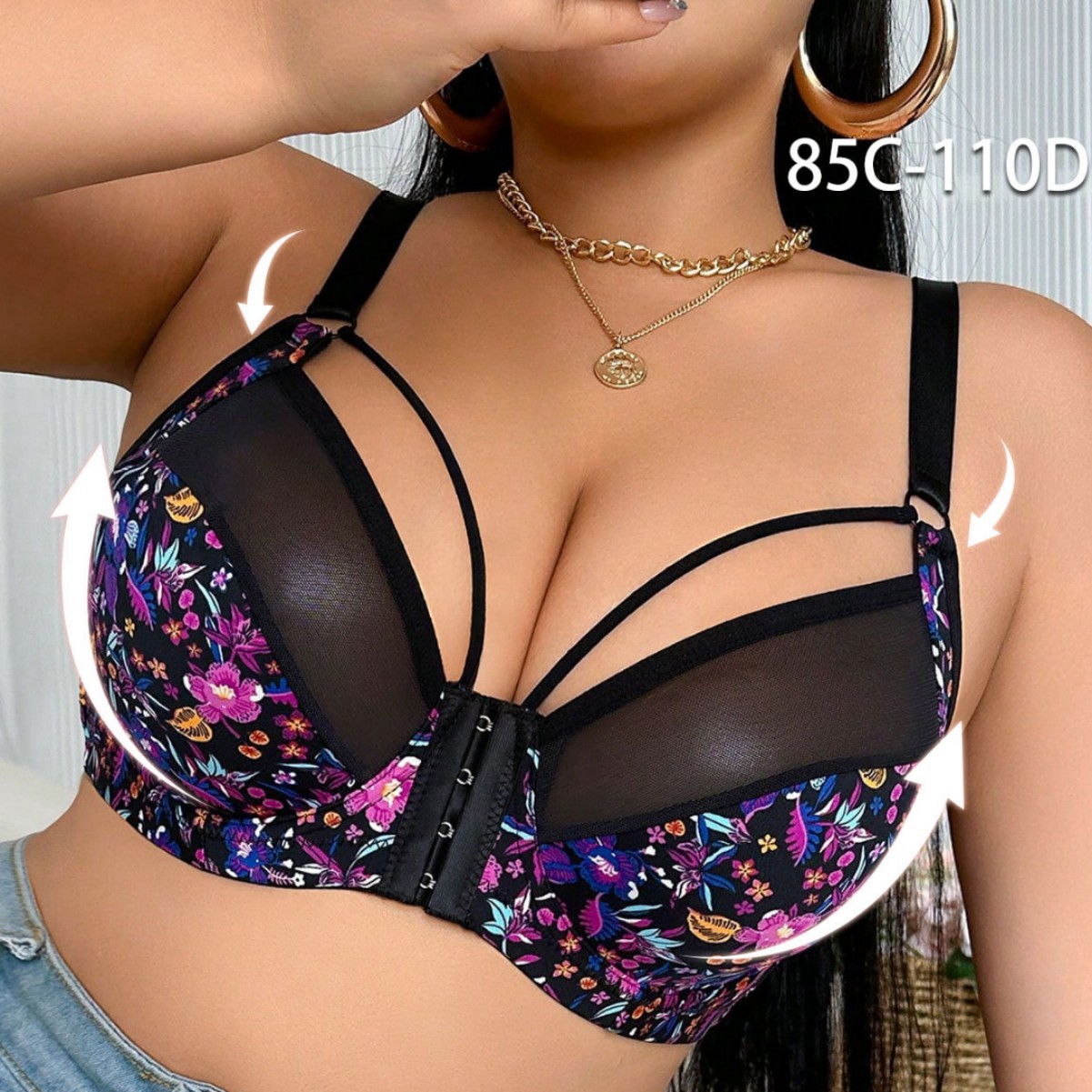 跨境爆款欧美希音TEMU亚马逊大码聚拢文胸加肥蕾丝前排扣大胸内衣