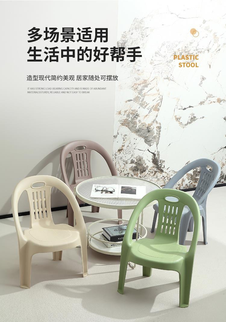 塑料矮靠背椅加厚成人扶手椅茶几矮凳防滑透气镂空靠背椅沙发小椅