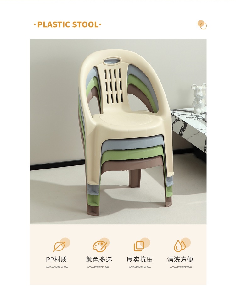 メーカー卸売 厚手プラスチック製スツール 家庭用プリンセスチェア 小さな背もたれ付き椅子 子供用椅子 屋台 バーベキュースタンド ダイニングテーブルと椅子