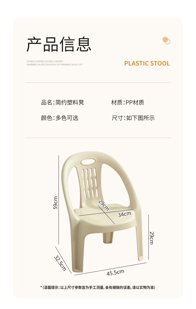 加厚塑料扶手椅客厅茶几矮凳子浴室防滑洗澡凳儿童学习椅靠背椅子