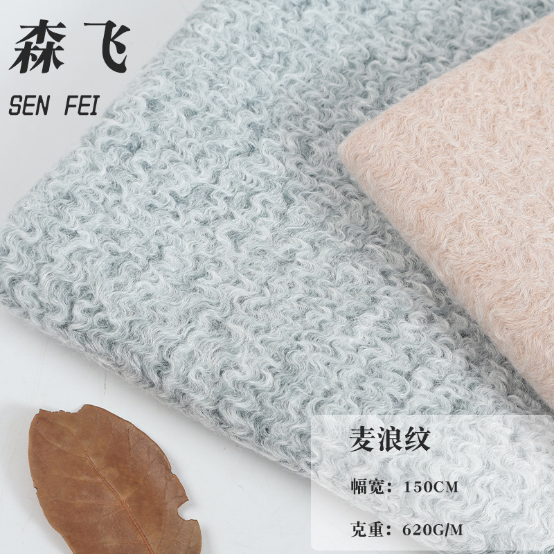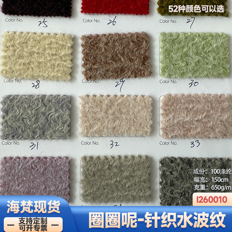 现货|620克针织刺毛波浪纹单面圈圈呢服装大衣外套鞋帽箱包裤面料