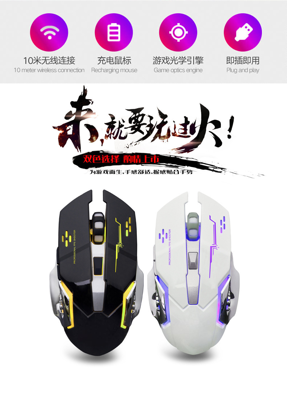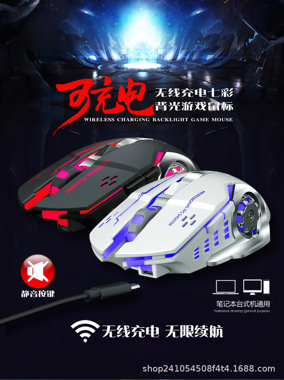 クロスボーダー卸売り無線マウス電気競争機械ゲーム多色クール無線マウスデスクトップノートビジネス