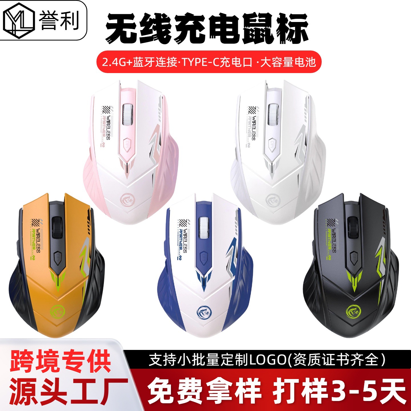 人体工学无线鼠标蓝牙可充电音游戏笔记本电脑办公鼠标批发跨境