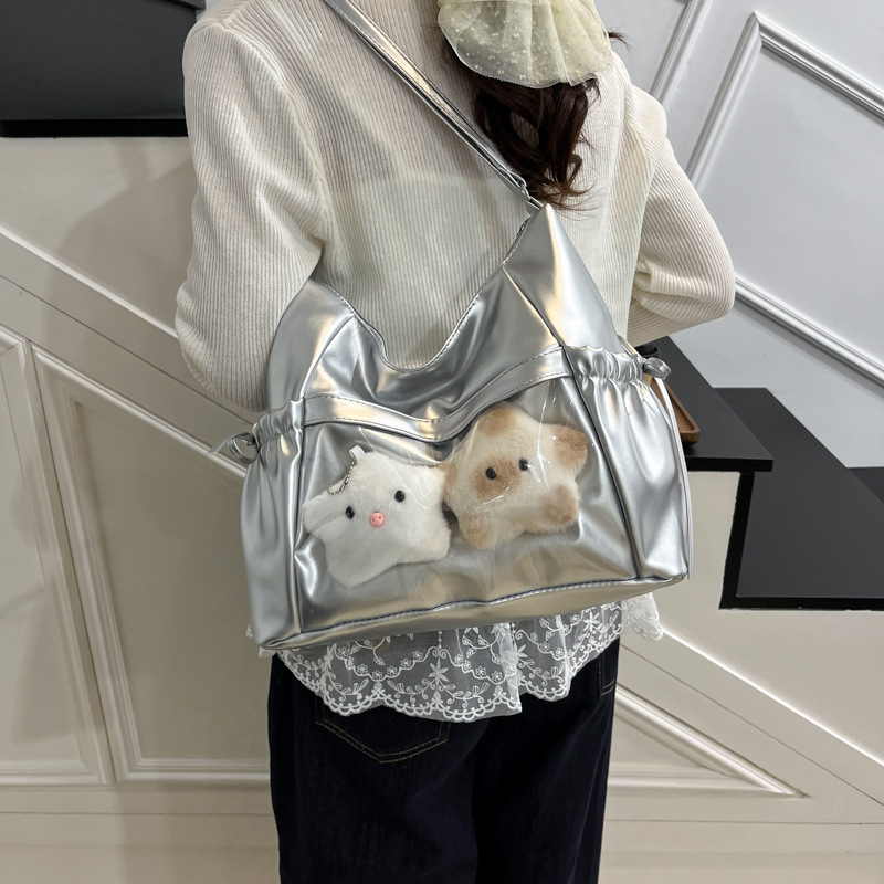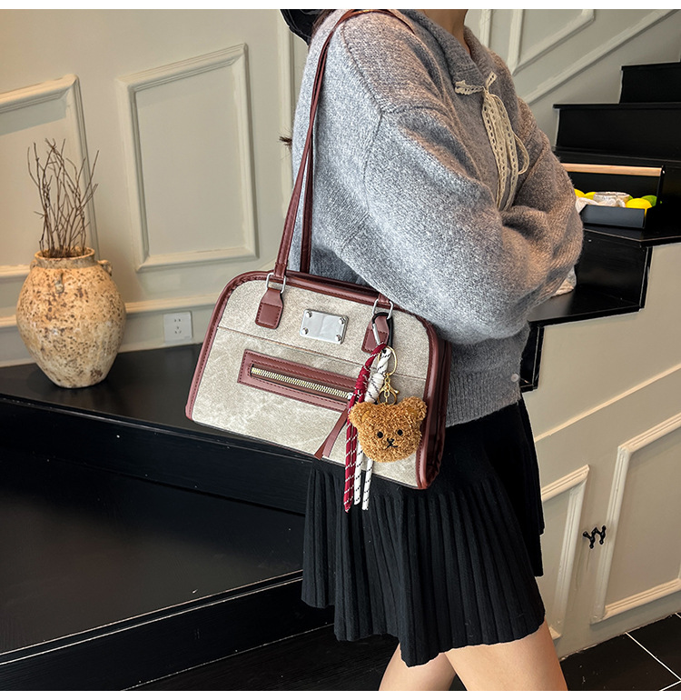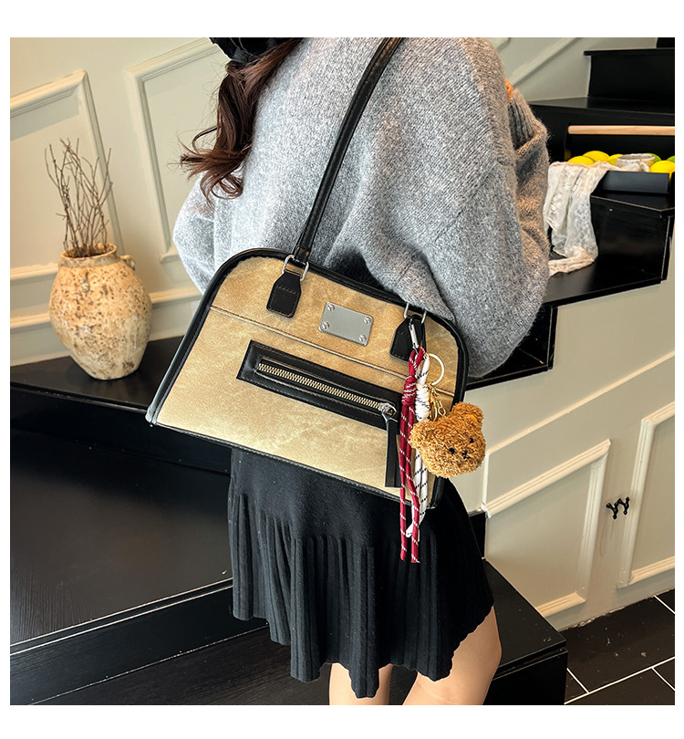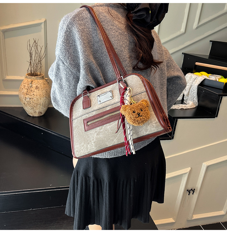 大容量ぬいぐるみバッグ2025秋冬新作レトロショルダーバッグおしゃれカジュアル万能通勤トートバッグ越境
