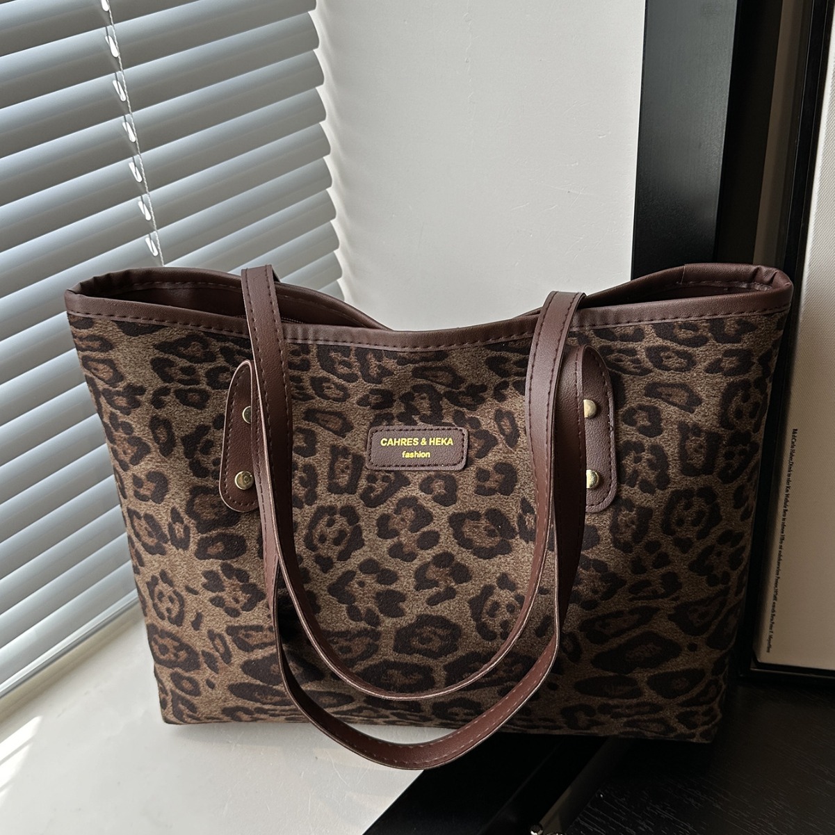 ヒョウ柄バッグ女性大容量2024新型秋冬フロストレトロなシングル肩レジ袋通勤バッグ