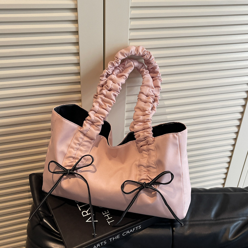 韓素希同タイプのしわ蝶結びバッグ女性2025新型トートバッグ大容量キャンバスバッグ斜め掛けバッグ