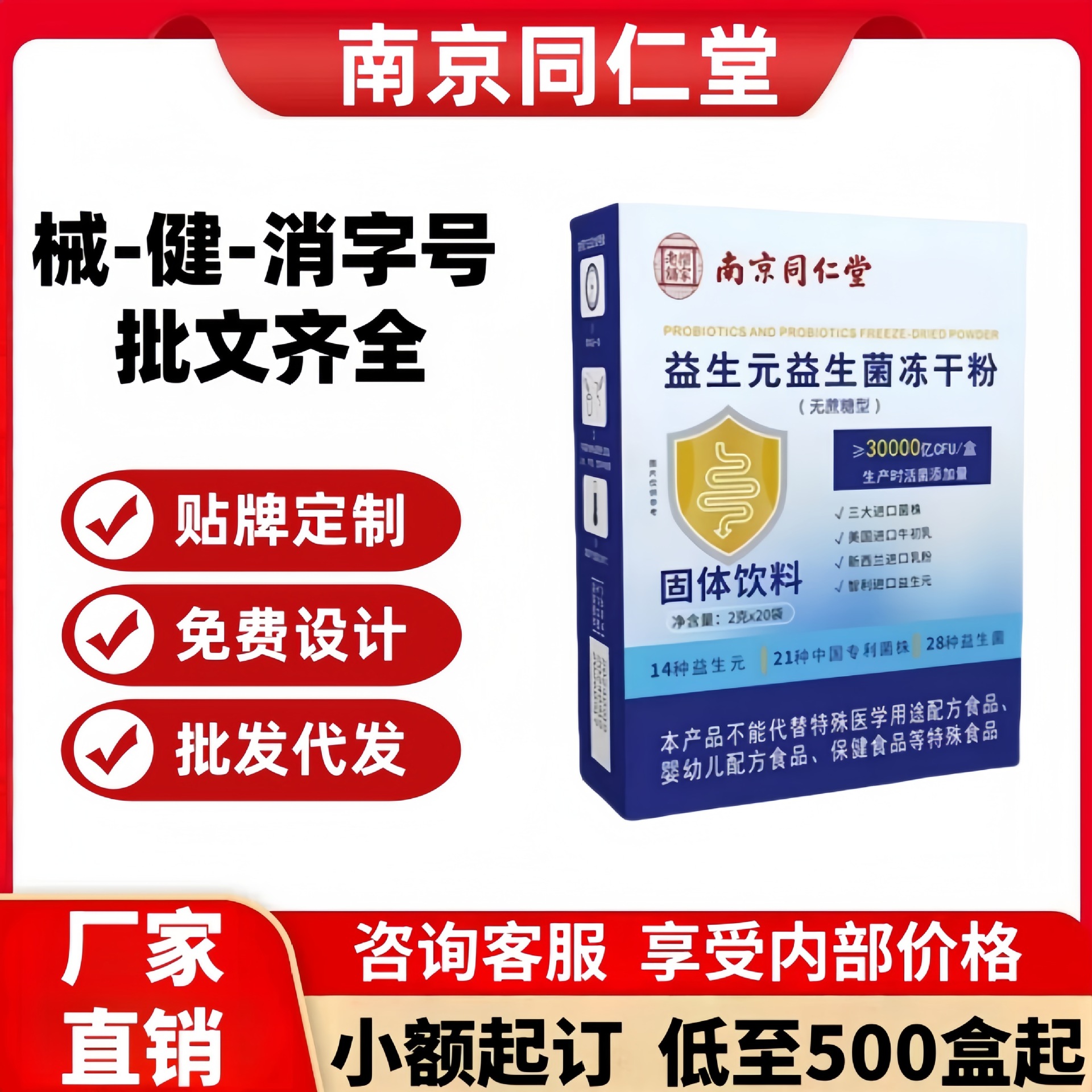 南京銅仁堂プレバイオティックプロバイオティックフリーズドライパウダー 20 袋/箱スポット価格優れた工場直接配送ドロップシッピング