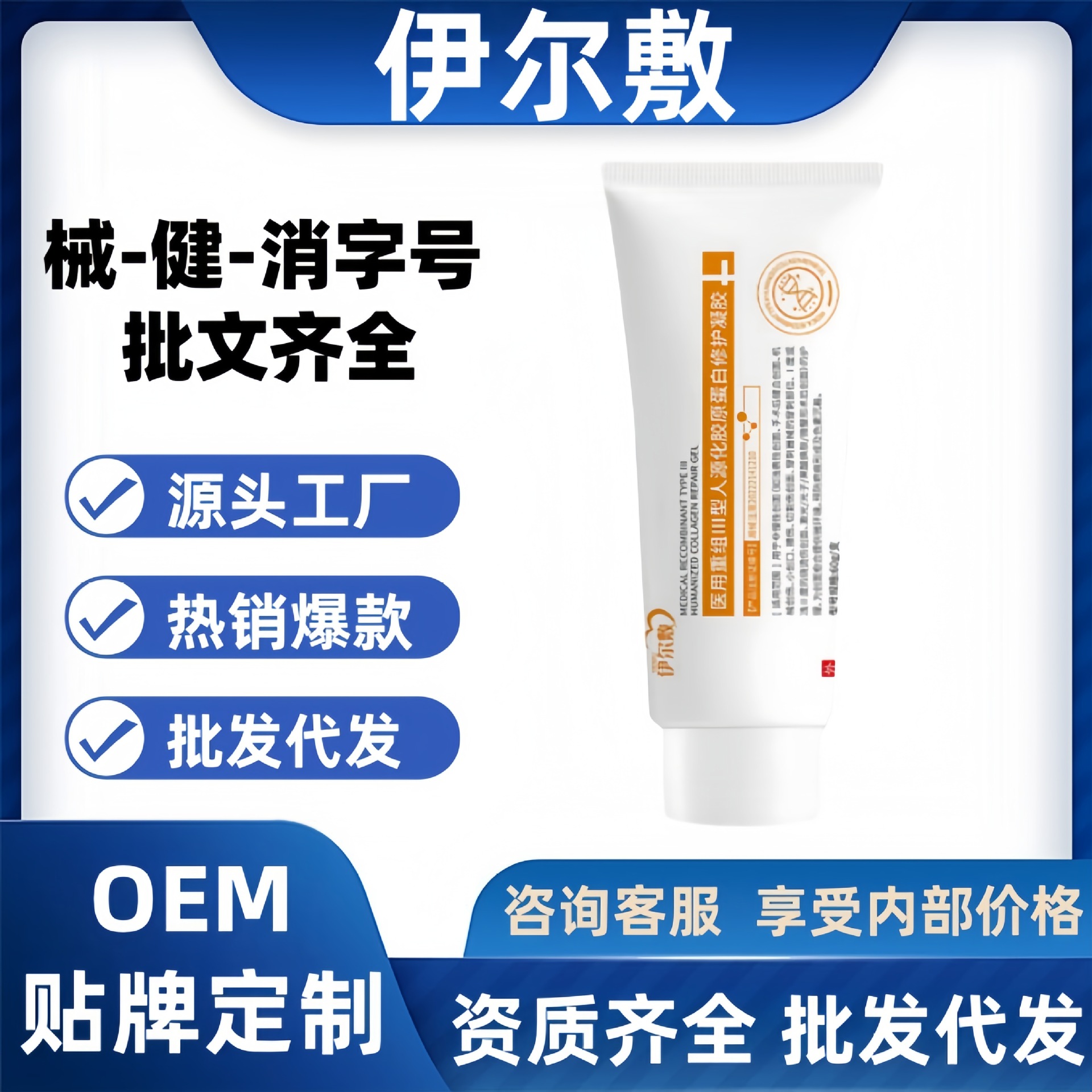 イルフ医療再構築型IIIヒト化コラーゲン修復ジェルメーカーが在庫から直接供給