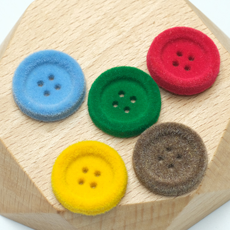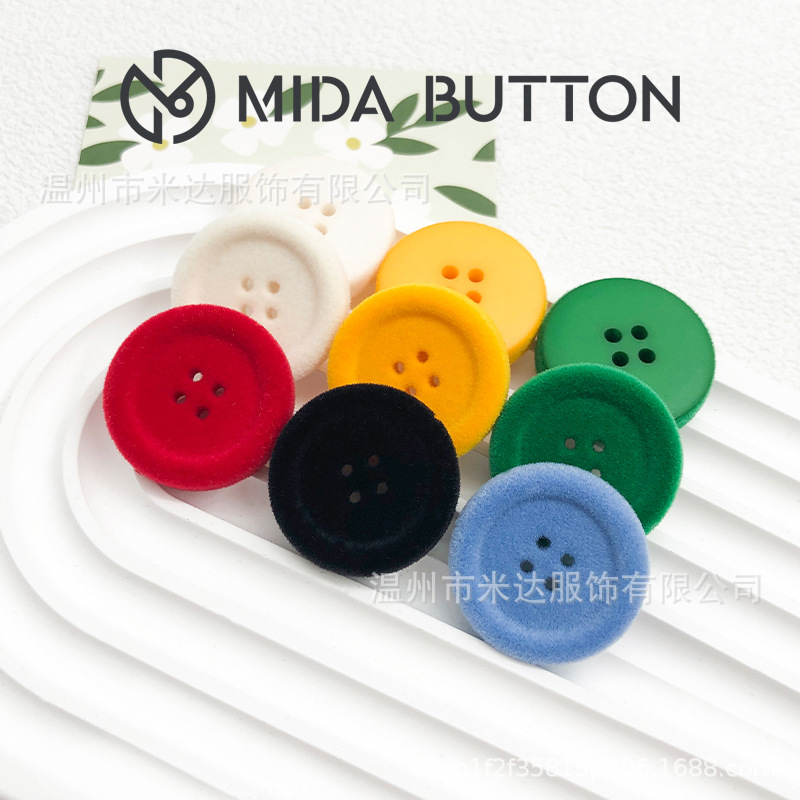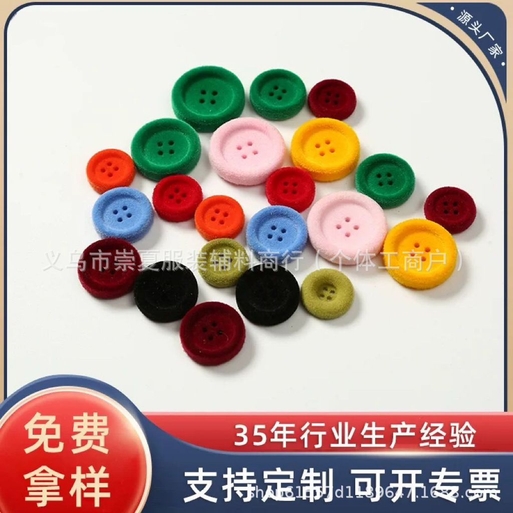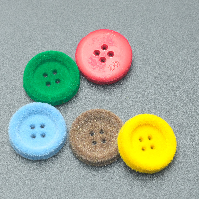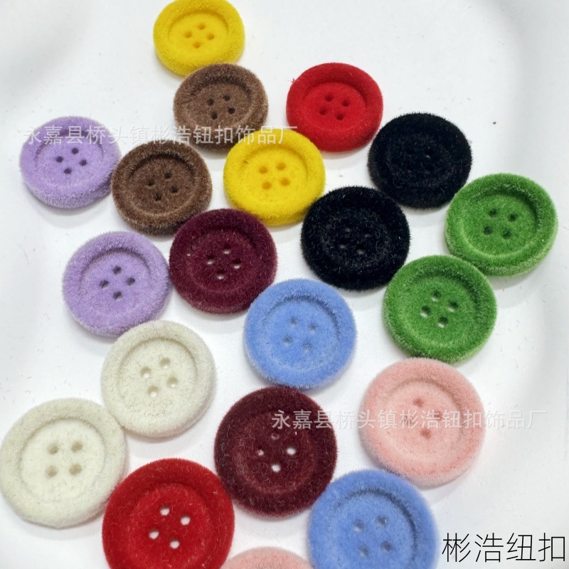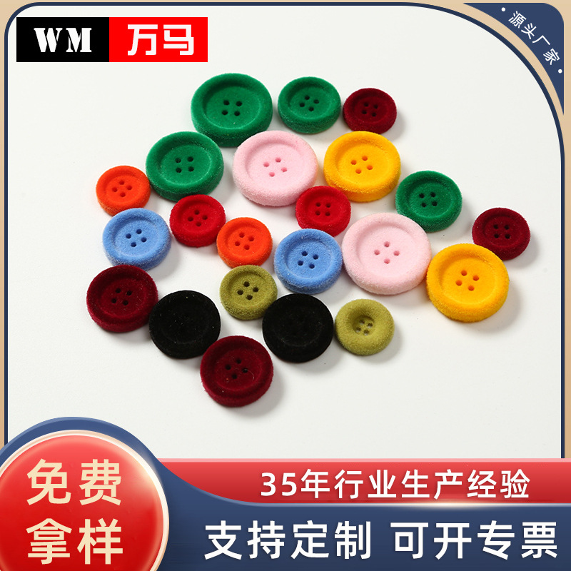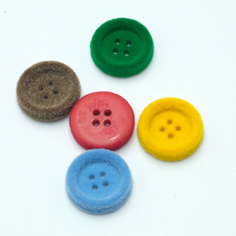 树脂纽扣彩色植绒钮扣秋冬季植绒装饰扣子大衣外套厂家新款四眼扣