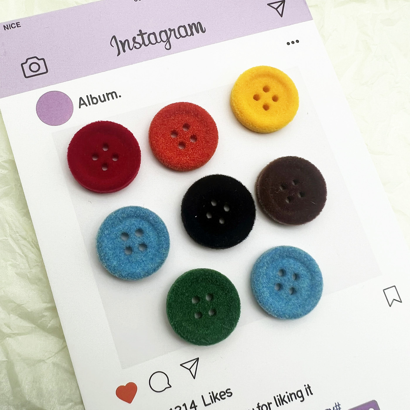 彩色圆形植绒秋冬毛绒上衣外套毛衣装饰纽扣新款百搭长眼宽边扣子