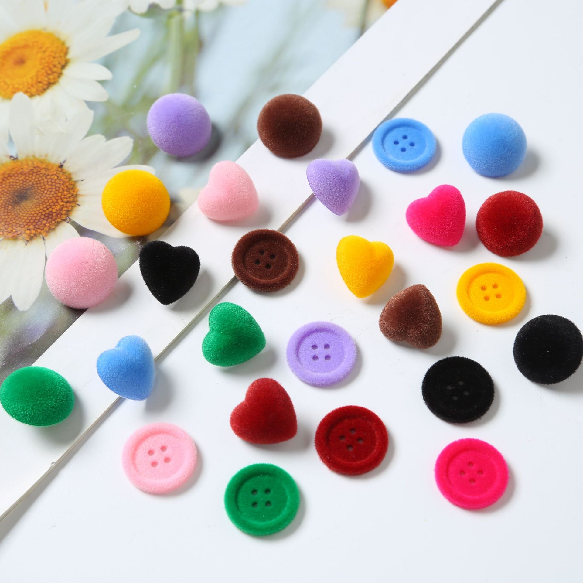 植绒树脂爱心钮扣大衣风衣扣西装四眼细边纽扣彩色植绒毛衣钮扣