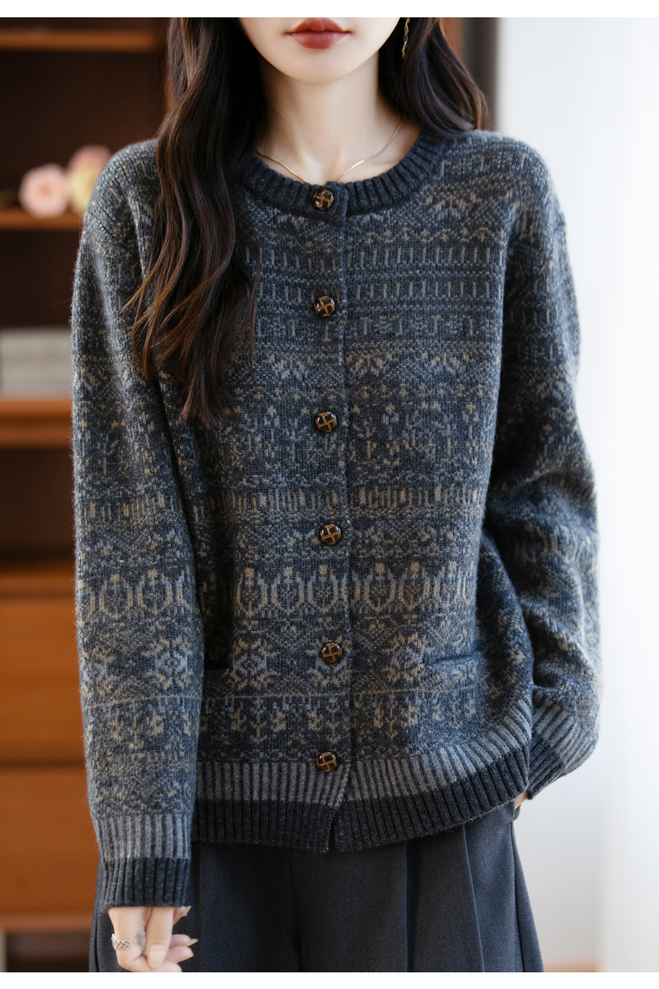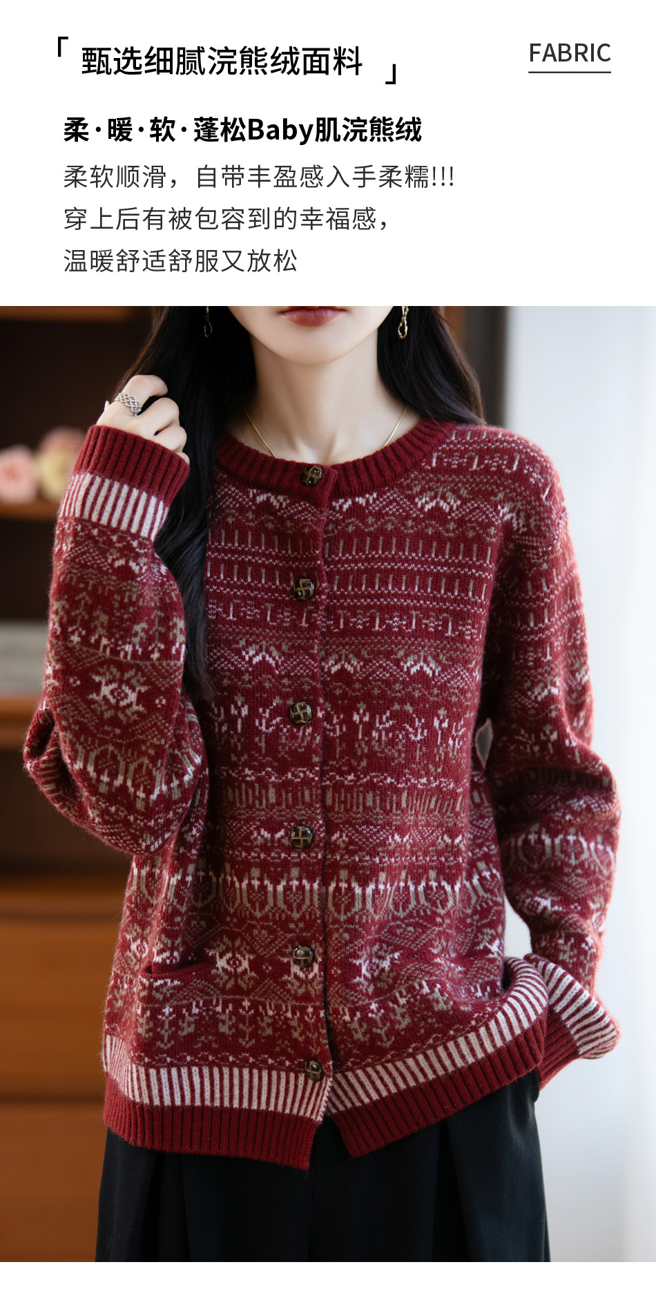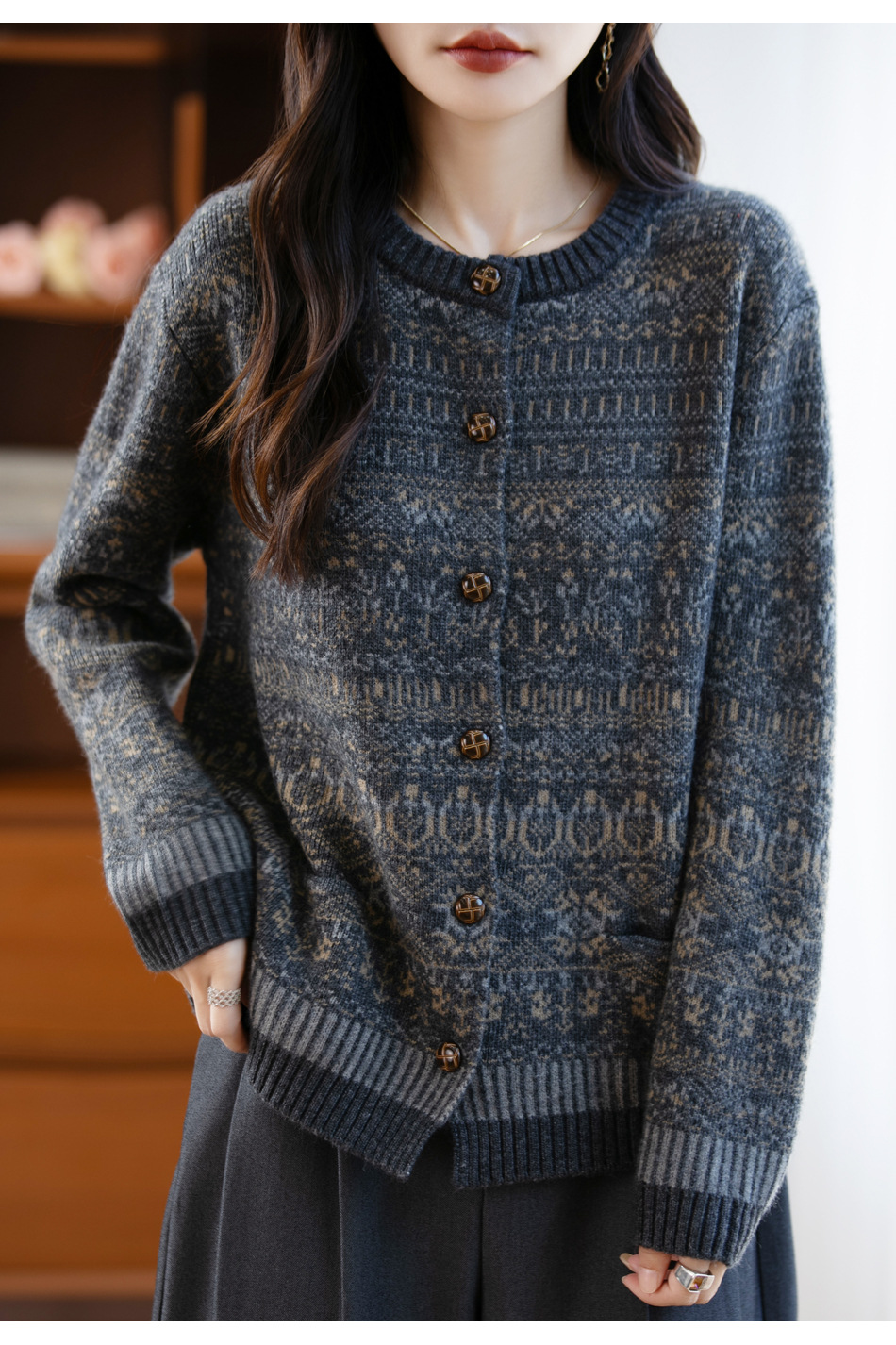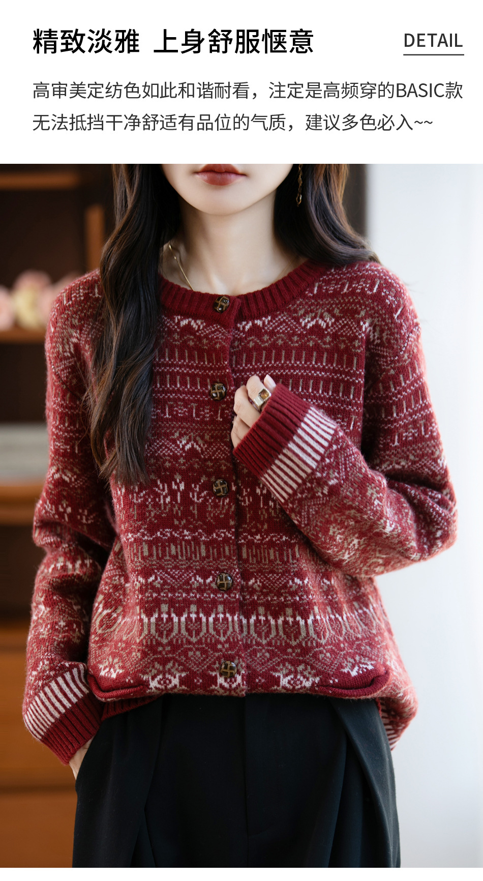 女装加厚木扣民族风开衫 慵懒显瘦 春秋百搭 简约高级感 日常通勤
