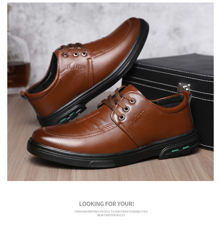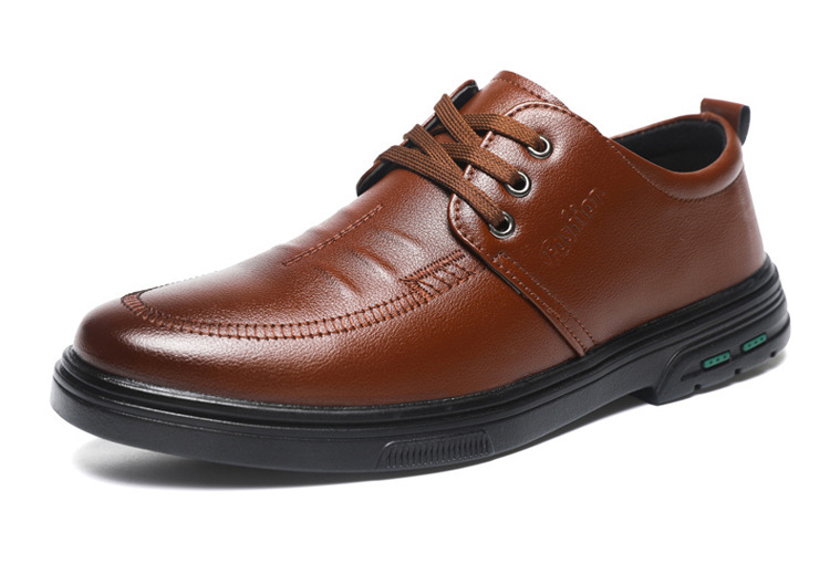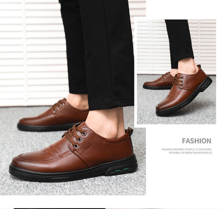 2025新款商务皮鞋休闲时尚男鞋棕色软底防滑平跟透气英伦风男鞋