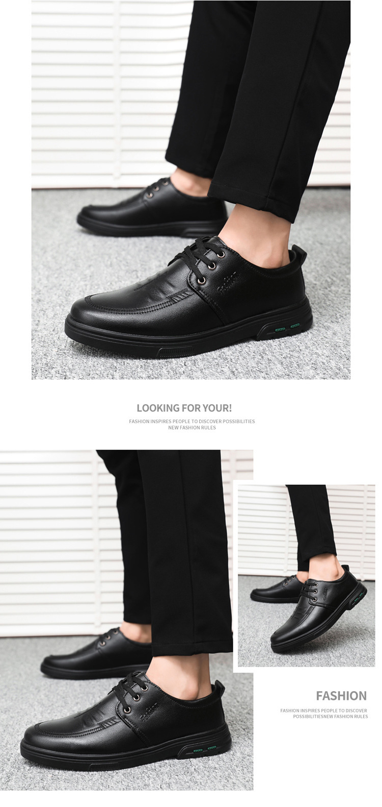 皮鞋新款时尚潮流百搭一脚蹬男士休闲皮鞋纯色防水轻便耐磨男鞋子