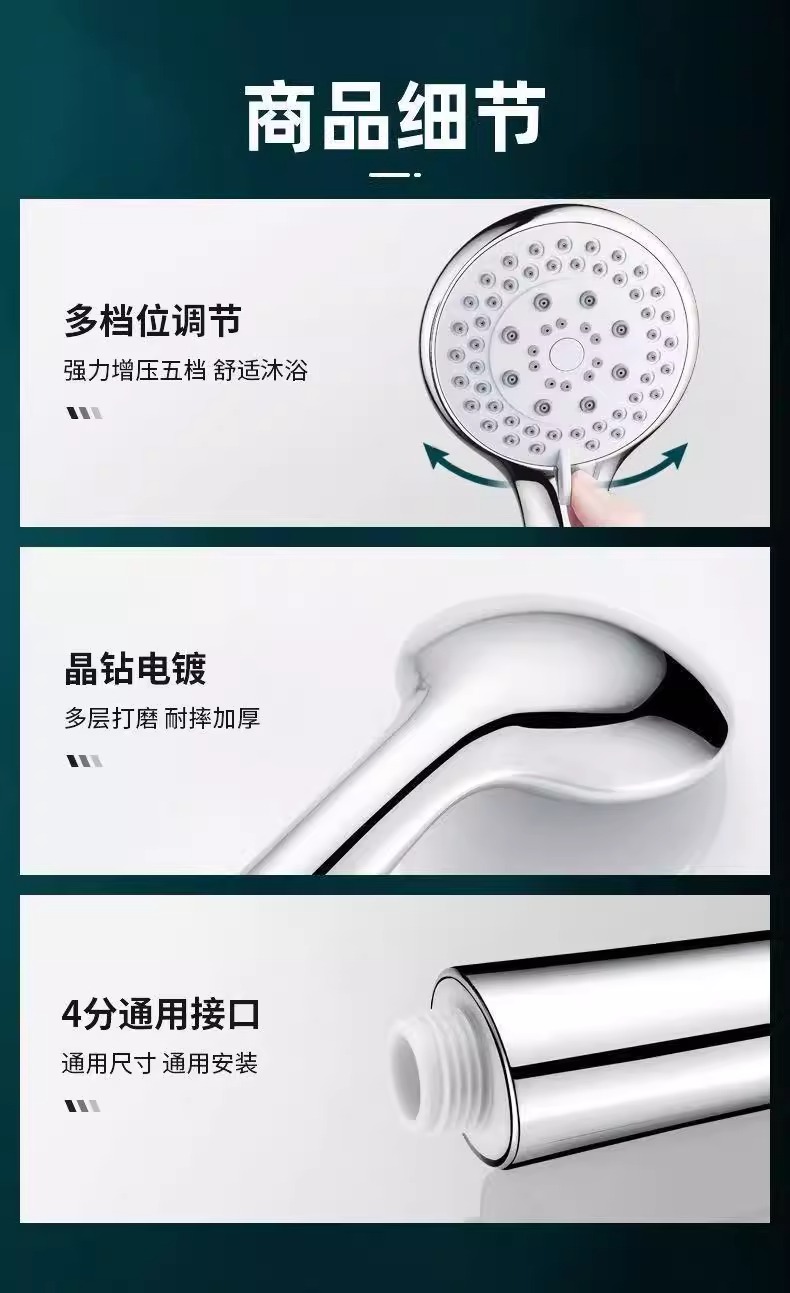 五档淋浴增压手持花洒喷头套装大出水ABS家用洗澡加压沐浴莲蓬头