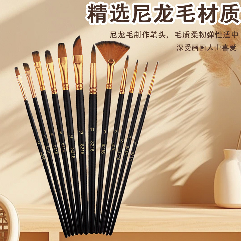 油絵ペンナイロン毛絵画ペン12ピースセット学生水彩画ペンアクリルペン美术油絵ブラシスプリンクラーペン
